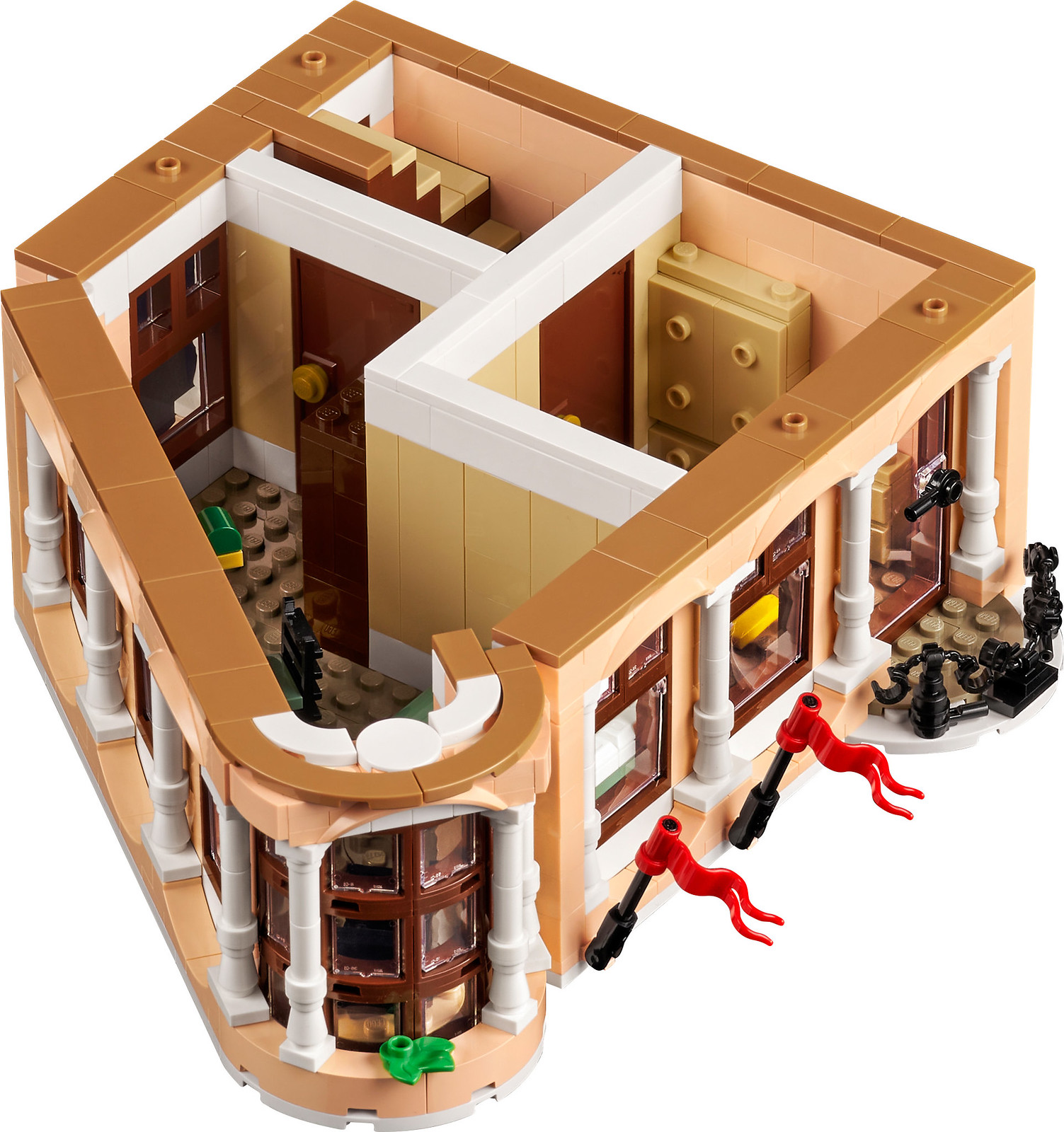 La finition semble encore une fois exemplaire. Remarquez également le petit stand de café, un hommage au tout premier bâtiment modulaire – le set 10182 Cafe Corner. À l’intérieur, les fans apprécieront de nombreuses références aux bâtiments modulaires précédents – ce nouveau set « célébrant » à sa manière les 15 ans de cette série de sets.