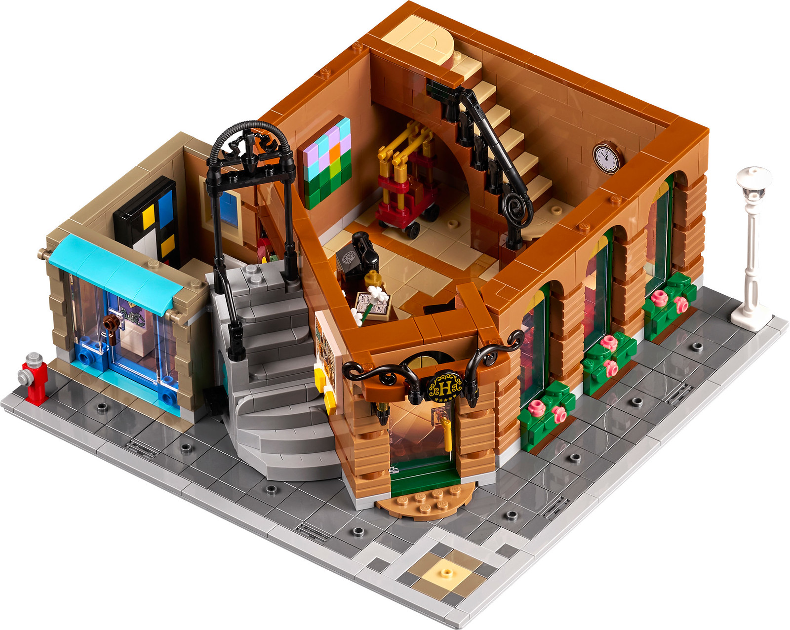 La finition semble encore une fois exemplaire. Remarquez également le petit stand de café, un hommage au tout premier bâtiment modulaire – le set 10182 Cafe Corner. À l’intérieur, les fans apprécieront de nombreuses références aux bâtiments modulaires précédents – ce nouveau set « célébrant » à sa manière les 15 ans de cette série de sets.
