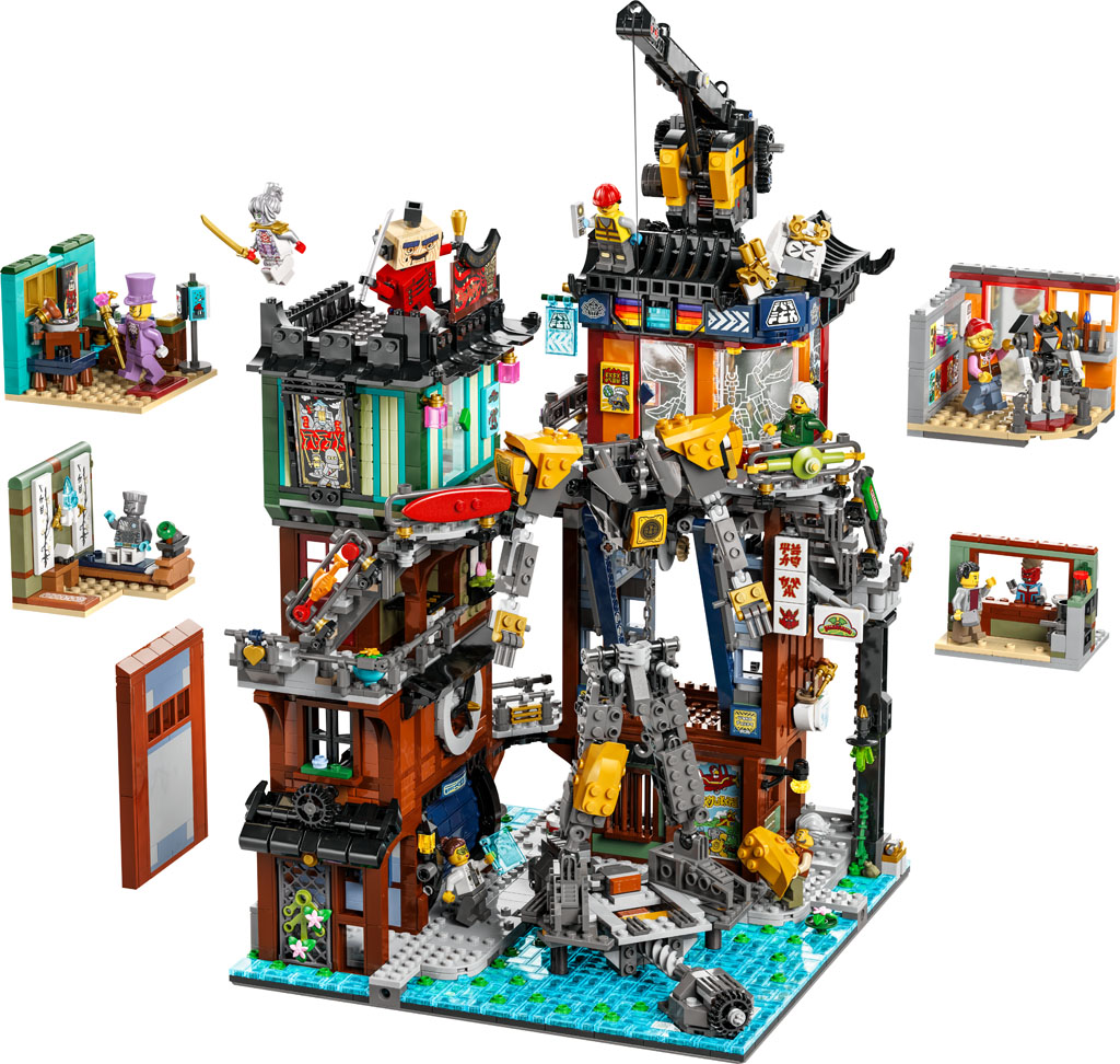 LEGO dévoile aujourd’hui le set LEGO 71837 NINJAGO City Workshops, nouvelle itération dans la collection de bâtiments modulaires LEGO NINJAGO. Il est attendu le 1er mars 2025, au prix de 249,99 € pour 3244 pièces.