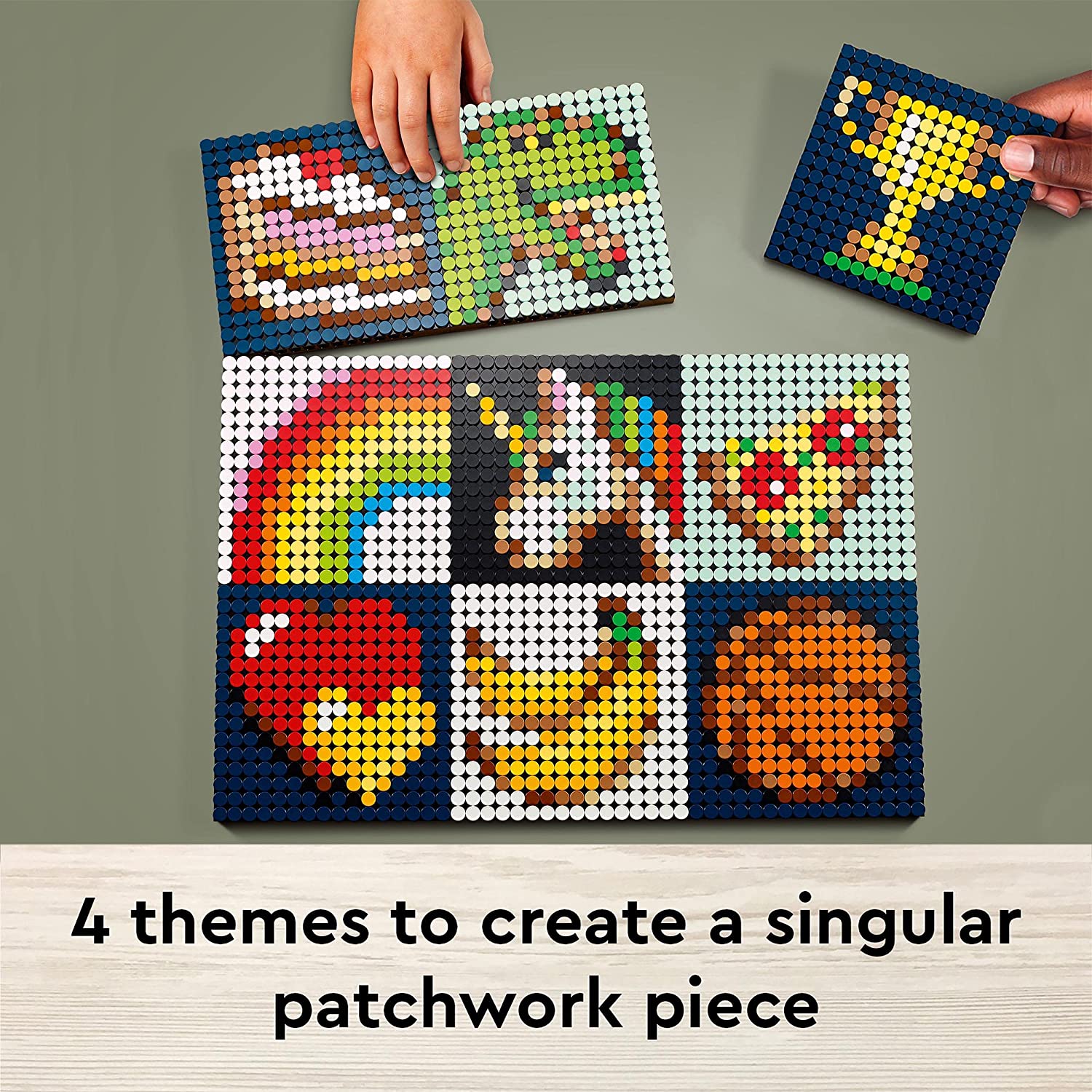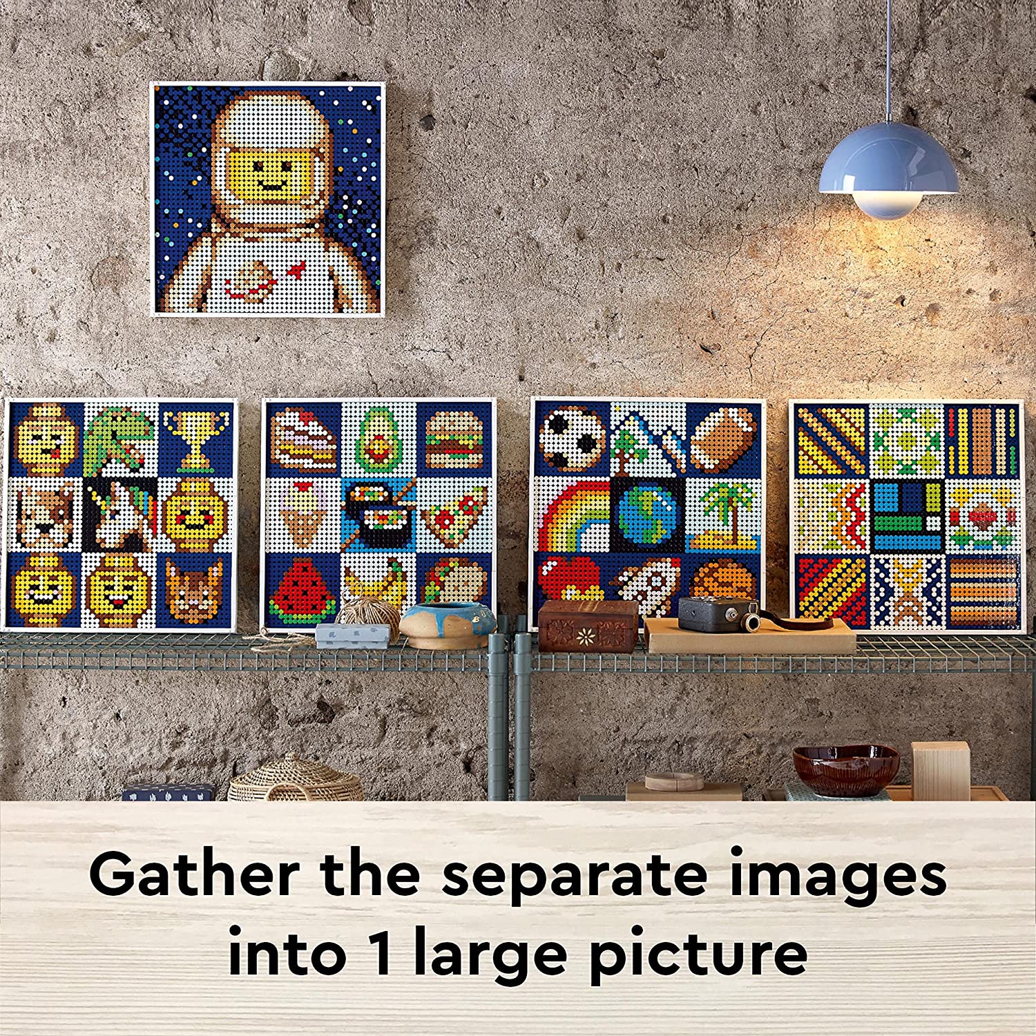 Les instructions fournies permettent d’assembler 36 petites mosaïques, sur les plaques de base de 16×16 tenons. Ces petites mosaïques peuvent ensuite être assemblées pour former un tableau plus grand. Et l’inscription Create Together laisse à penser qu’il sera possible de construire à plusieurs. Il sera également possible de créer une grande mosaïque plus « traditionnelle » pour la gamme, représentant un astronaute Classic Space blanc.