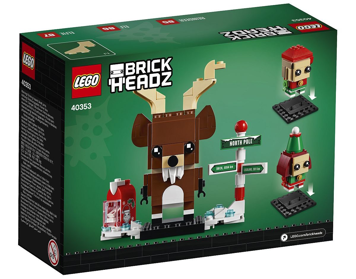 Après le set 40274 – Mr. & Mrs. Claus l’année dernière, LEGO remet le couvert cette année pour Noël avec le set LEGO BrickHeadz 40353 – Reindeer, Elf & Elfie. Ils portent les numéros 85, 86 et 87 dans la collection.