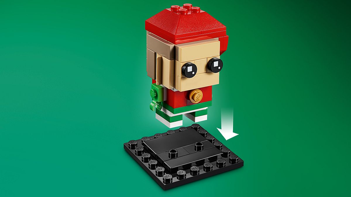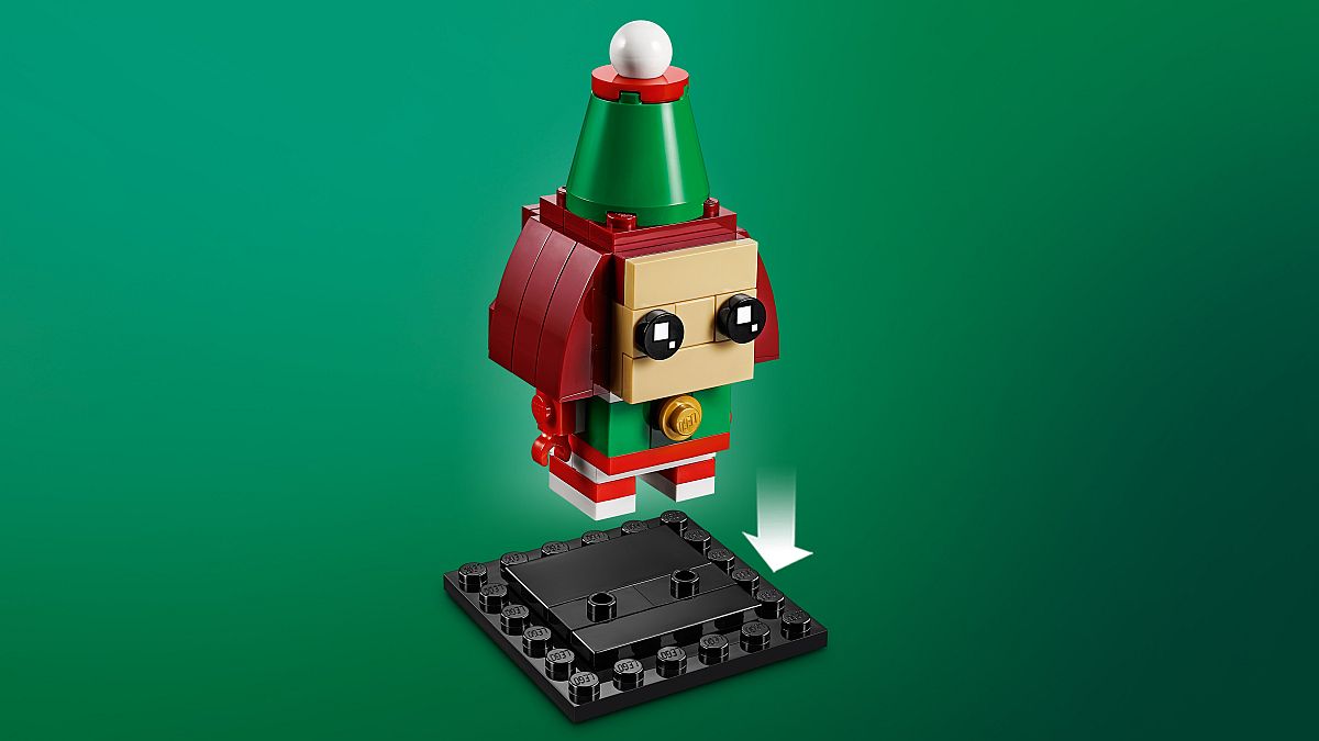 Au programme de cette boîte de 281 pièces : un renne, et deux elfes version « mini-BrickHeadz » (3×3 tenons) comme on a pu les voir dans les sets 41626 – Groot & Rocket ou 41627 – Luke Skywalker & Yoda. Et un petit panneau indiquant le pôle nord, ainsi qu’une boîte aux lettres pour recevoir le courrier du Père Noël.