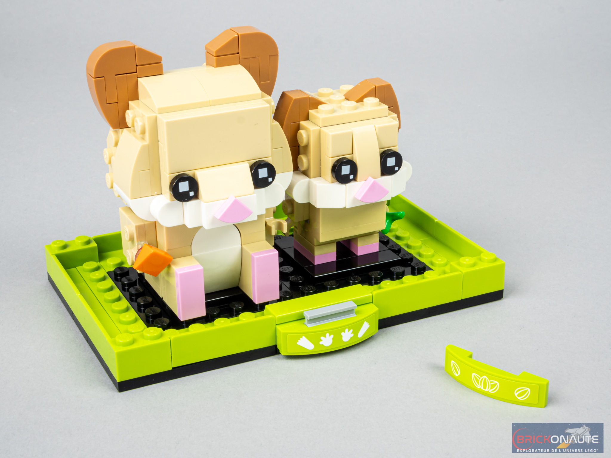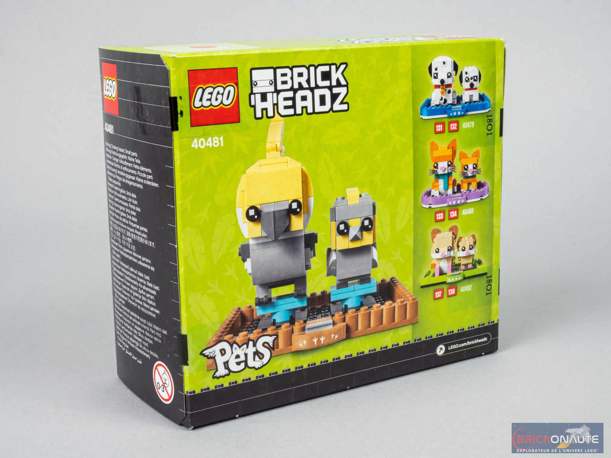 Nous aurons droit à une nouvelle espèce de chat avec la référence 40480 Ginger Tabby (ou chat roux tigré), à une nouvelle espèce d’oiseau avec le set 40481 Cockatiel (ou perruche calopsitte), et à un tout nouvel animal, avec le modèle 40482 Hamster. Comme d’habitude, chacun des animaux est présenté avec son petit, sur un support d’exposition original.
