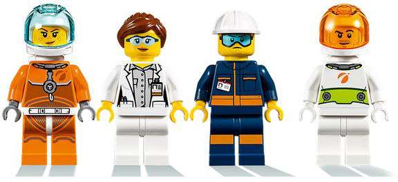 Au programme, 4 minifigs dans des tenues variées, depuis l’ouvrier jusqu’à l’astronaute. On trouvera également quelques outils, et un bureau avec un microscope et des panneaux solaires.