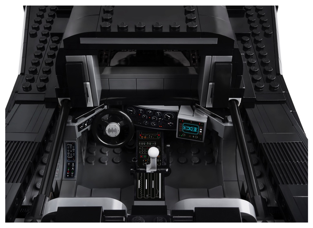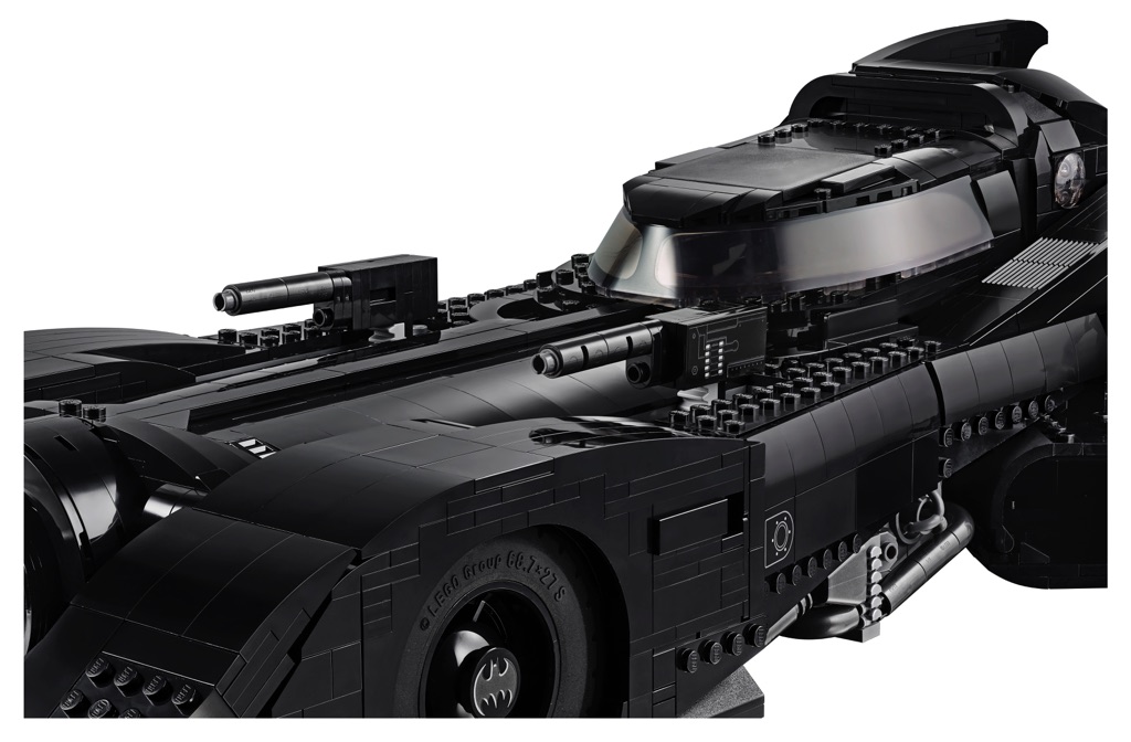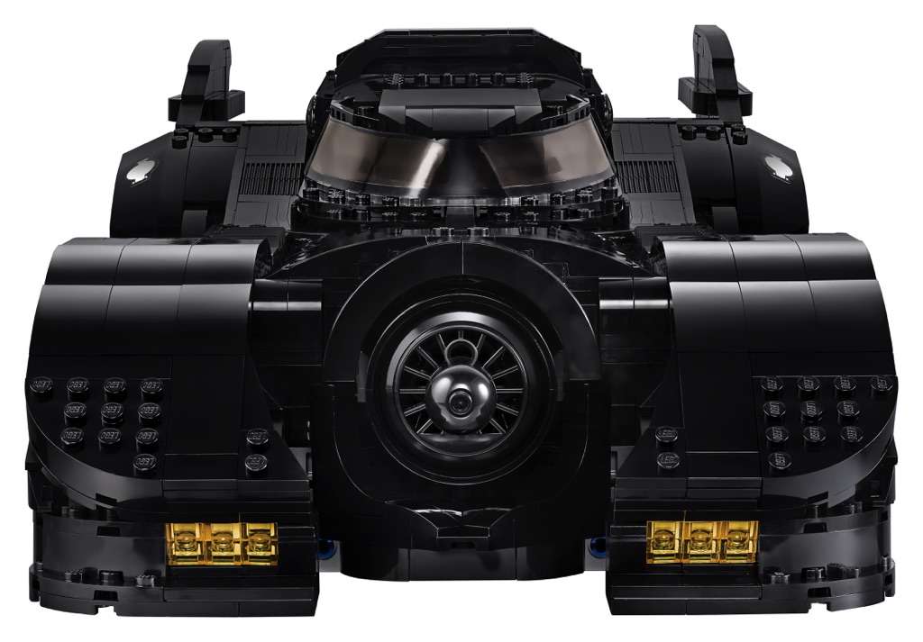 - Cette version en briques LEGO® de la 1989 Batmobile™ comprend un cockpit qui s’ouvre en coulissant avec pare-brise panoramique (nouveauté de novembre 2019), 2 sièges pour figurines, un volant, des autocollants symbolisant le levier de vitesse et le tableau de bord, 2 mitrailleuses qui ne tirent pas dissimulées sous le capot et qui s’activent en tournant l’échappement de la turbine, 2 grappins décoratifs, des enjoliveurs portant le logo de la chauve-souris et des pneus spécialement conçus pour les roues avant, des batwings et d’autres détails emblématiques.