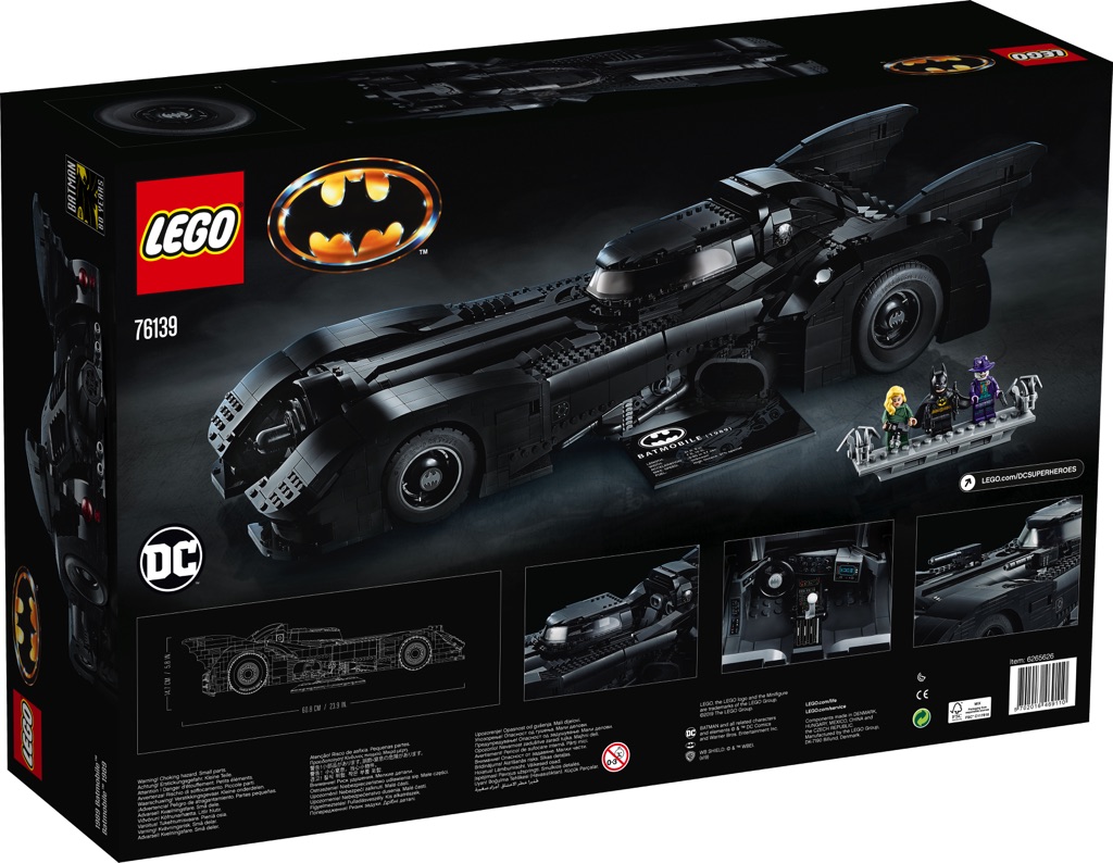 Le set 76139 – 1989 Batmobile reproduit, dans une version qu’on pourrait qualifier « d’UCS », l’engin piloté par Batman dans le film de Tim Burton en 1989. Elle compte 3306 pièces, et sortira à l’occasion du Black Friday le 29 novembre prochain. Les premières « estimations » étaient justes : elle coûtera 249,99 € en France. La Batmobile est plutôt imposante : elle mesure pas moins de 60cm de long, pour 22cm de large et 12cm de haut.