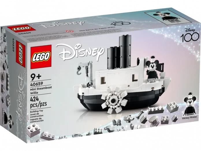 Après le set LEGO Ideas 21317 Steamboat Willie sorti en 2019, c’est une version logiquement moins ambitieuse qui nous est proposée avec cette boîte de 424 pièces. On y retrouve une minifig de Mickey Mouse, et le S. S. Willie, bateau dont la célèbre souris prend les commandes dans le film de 1928 – premier film à le mettre en scène bénéficiant d’une bande son synchronisée.