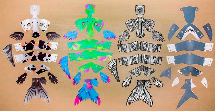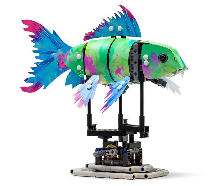 Quatre sets sont ainsi proposés : le premier (81000 – Koi) vous propose de construire un « squelette » de poisson articulé et d’y ajouter un skin de carpe Koi. Les trois autres (81001 – Shark skin, 81002 – Splash Koi skin et 81003 – Ink Koi skin) sont, comme leurs noms l’indiquent, de simples « habillages » afin de transformer la carpe initiale en un autre poisson. La plateforme permet d’acheter le set de base et d’y ajouter les skins que l’on souhaite. Une « super box » avec l’ensemble des skins est également proposée, le tout pour la modique somme de 85 $, ou 45 $ le set de base + 15 $ par skin.