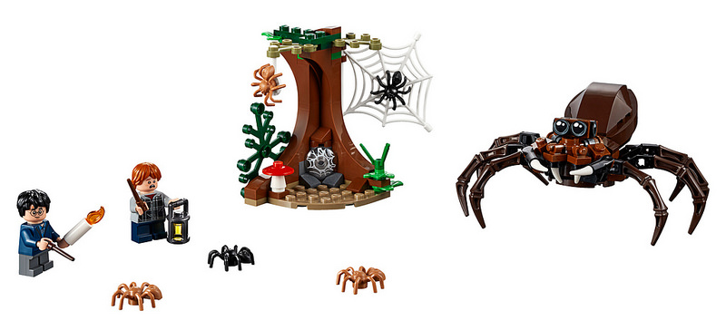 Celle-ci compte 157 pièces et devrait être proposée aux alentours de 19,99€. Pour ce prix, on trouvera une version brick-built de l’araignée géante Aragog, un morceau de la forêt interdite avec quelques petites araignées, et deux minifigs : Harry Potter et Ron Weasley.