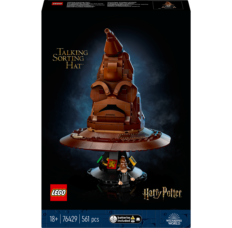 Le set est attendu pour le 1er mars prochain, au prix de 99,99 € pour 561 pièces. Un prix qui semble élevé au 1er abord mais qui s’explique (peut-être) partiellement par la présence d’un brique sonore permettant 31 combinaisons différentes si on en croit l’information présentée au dos de la boîte. La réalisation du Choixpeau semble plutôt soignée, même si on regrettera une fois encore quelques vilains autocollants.