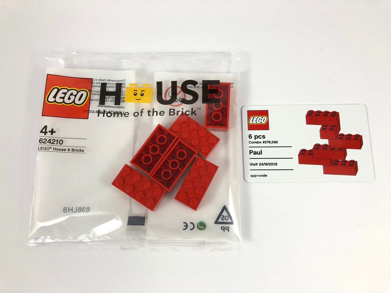 Juste avant la sortie, vous pourrez observer une mini-usine de fabrication de briques, qui assemble le polybag 624210 – LEGO House 6 Bricks. Vous pouvez récupérer grâce à votre bracelet une combinaison unique de 6 briques, qui vous est récapitulée sur une carte (format carte de crédit) et repartir avec un sachet. Une manière de rendre votre visite unique, puisque pas moins de 915 103 765 combinaisons sont possibles avec (seulement) 6 briques. Les combinaisons des premiers visiteurs sont exposées au mur.