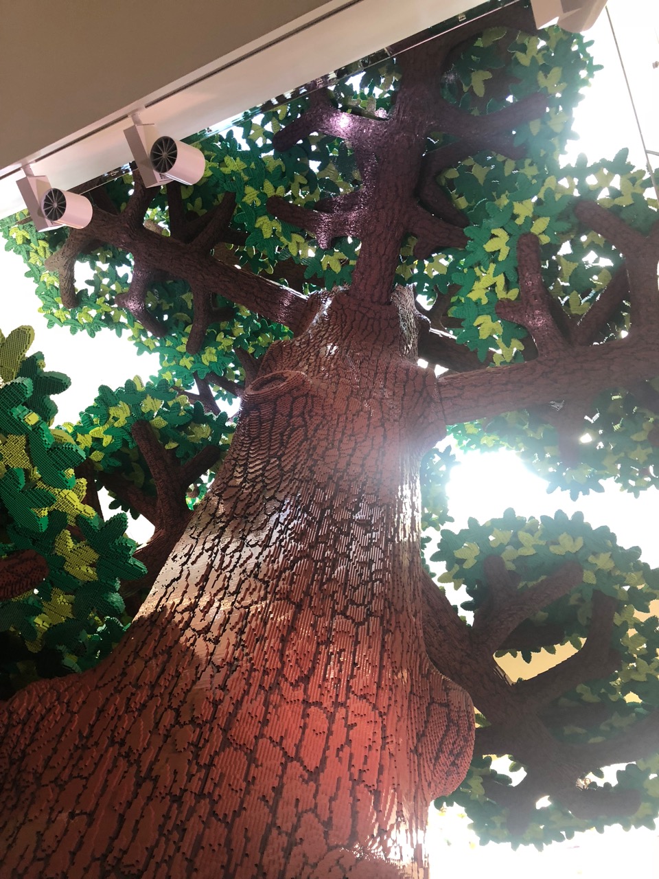 Il ne reste qu’à scanner votre bracelet à l’entrée, et vous voilà dans l’escalier qui tourne autour de l’immense Tree of Creativity – 6 316 611 briques pour 15 mètres de haut et 11 tonnes, tout de même ! Et ça regorge de détails : les initiales des différents membres de la familles Christiansen sont « gravées » dans le tronc tout comme le premier canard en bois de la marque, les branches supérieures sont ornées de sets représentant les thèmes emblématiques de la marque (non sans quelques fantaisies), et une grue trône tout en haut, comme une manière de montrer la perpétuelle évolution de LEGO. On pourrait passer des heures à observer cet arbre, mais il y a bien d’autres choses à faire !