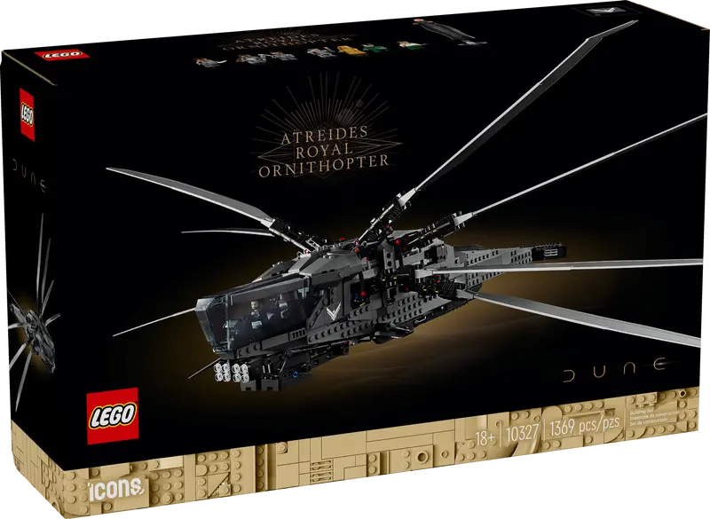 LEGO vient de mettre en ligne sur la boutique officielle le set LEGO Icons 10327 Dune Atreides Royal Ornithopter, inspiré par l’engin vu dans le film Dune sorti en 2021. Le set est déjà en précommande au prix de 164,99 € pour 1369 pièces, avec une sortie attendue pour le 1er février 2024.