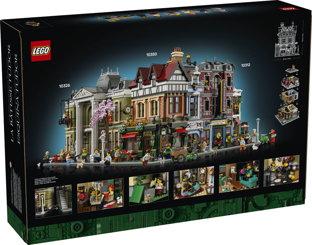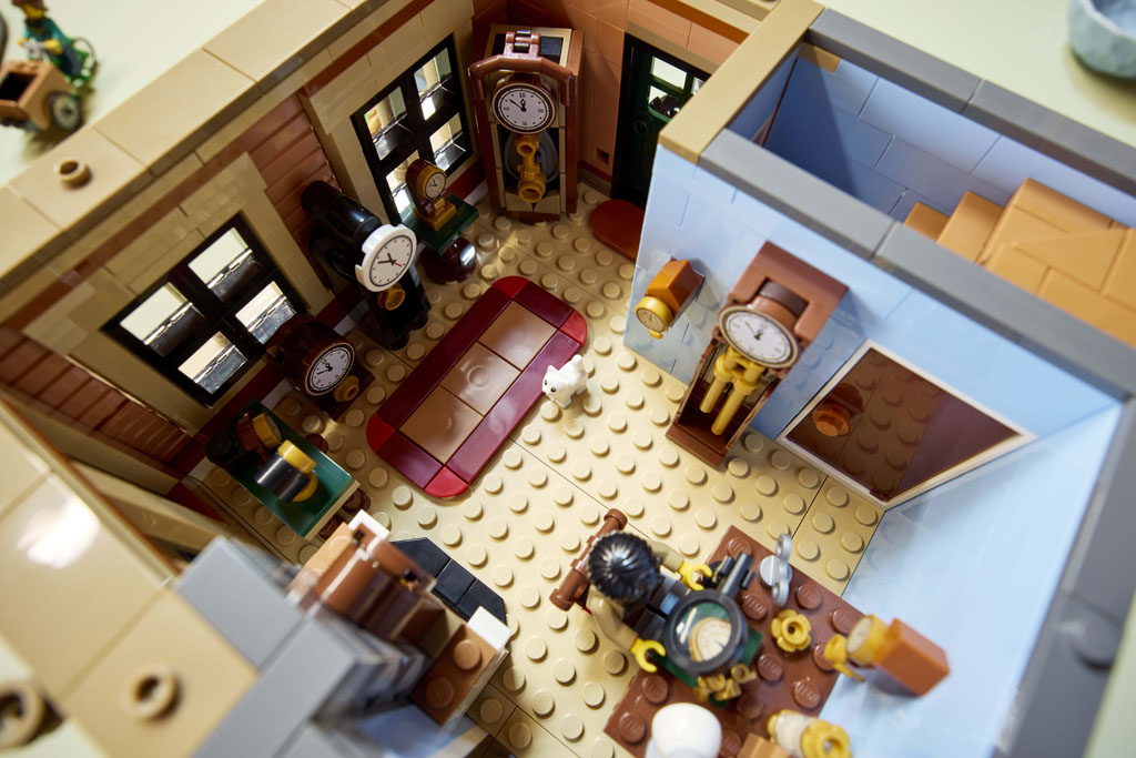 Comme son nom l’indique, il s’agira ici d’un bâtiment de style Tudor – aboutissement de l’architecture médiévale britannique au cours de l’ère Tudor (merci Wikipedia). Tous les niveaux sont richement aménagés avec une mercerie et un restaurant au rez-de-chaussée, l’atelier d’un horloger au premier étage, et un appartement sous les combles au dernier niveau. On y trouve également 8 minifigs.