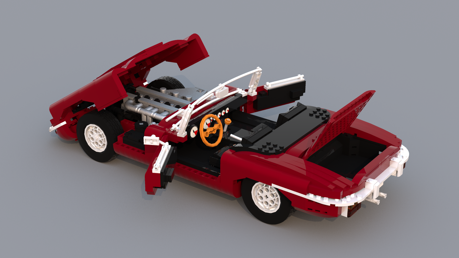 Joli projet que cette Jaguar E-Type Roadster, représentant à l’échelle 1 : 10 (20 tenons de large pour 54 de long) une voiture emblématique de la marque anglaise, ayant fait une apparition dans des films et séries comme Austin Powers ou Mad Men. Le projet, dans sont état actuel, comprend 1664 pièces. Le détail qui tue : le capot qui s’ouvre sur le magnifique 6 cylindres en ligne. Avec comme projet par l’auteur l’ajout d’une suspension, dont pour le coup je doute de l’utilité, ce modèle étant clairement destiné à être exposé.