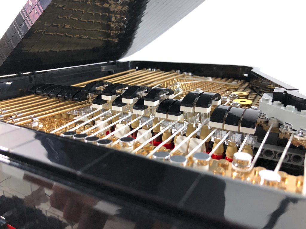 Même si dans les faits aucune musique n’en sort, tout est là : les touches, reliées à des marteaux, viennent taper des cordes situées dans le piano. La pédale est fonctionnelle, il est possible d’ouvrir le piano dans deux positions et, cerise sur le gâteau, le tabouret du pianiste est réglable en hauteur. On peut également retirer le clavier pour en observer le fonctionnement, ou encore motoriser le piano pour qu’il « joue » tout seul.