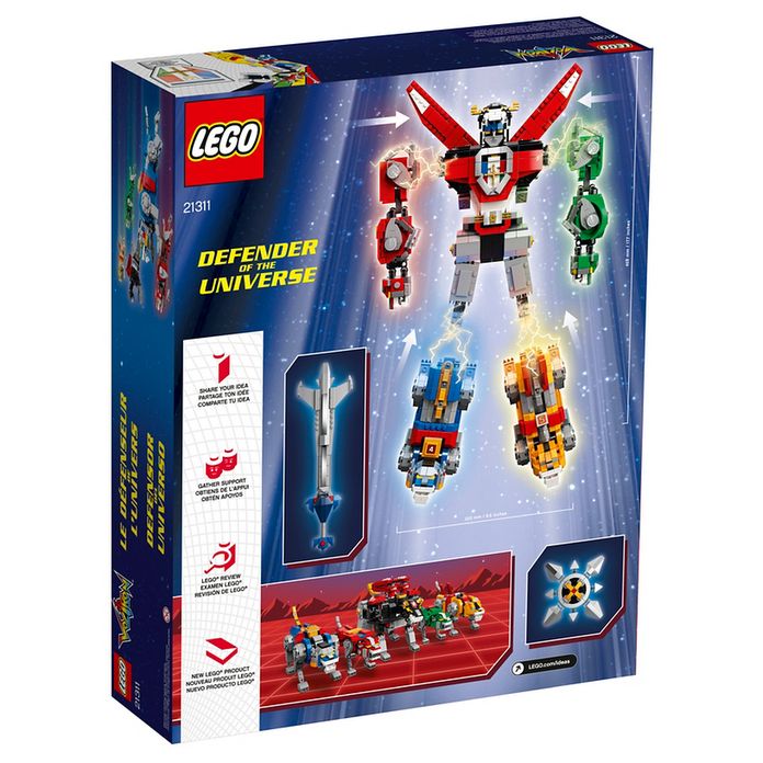 Il est temps de défendre l’univers avec le Voltron LEGO® Ideas 21311, le plus grand robot LEGO jamais construit ! Cet ensemble impressionnant comprend des lions à construire noirs, bleus, jaunes, rouges et verts avec des joints extra-solides spécialement conçus pour combiner les lions et créer le super robot Voltron. Une épée et un bouclier énormes qui s’attachent fermement aux mains de Voltron sont également inclus. Cet ensemble est idéal pour être exposé ou pour recréer l’action palpitante de la série TV animée originale des années 80 Voltron et la série moderne DreamWorks Voltron : Le défenseur légendaire.