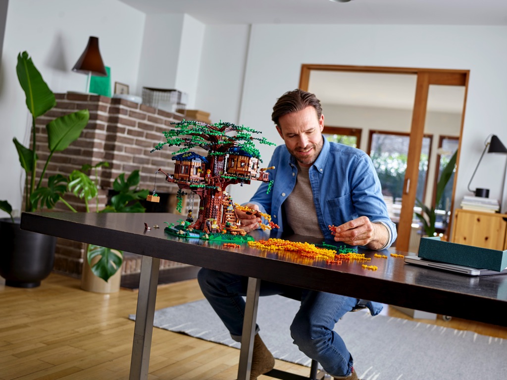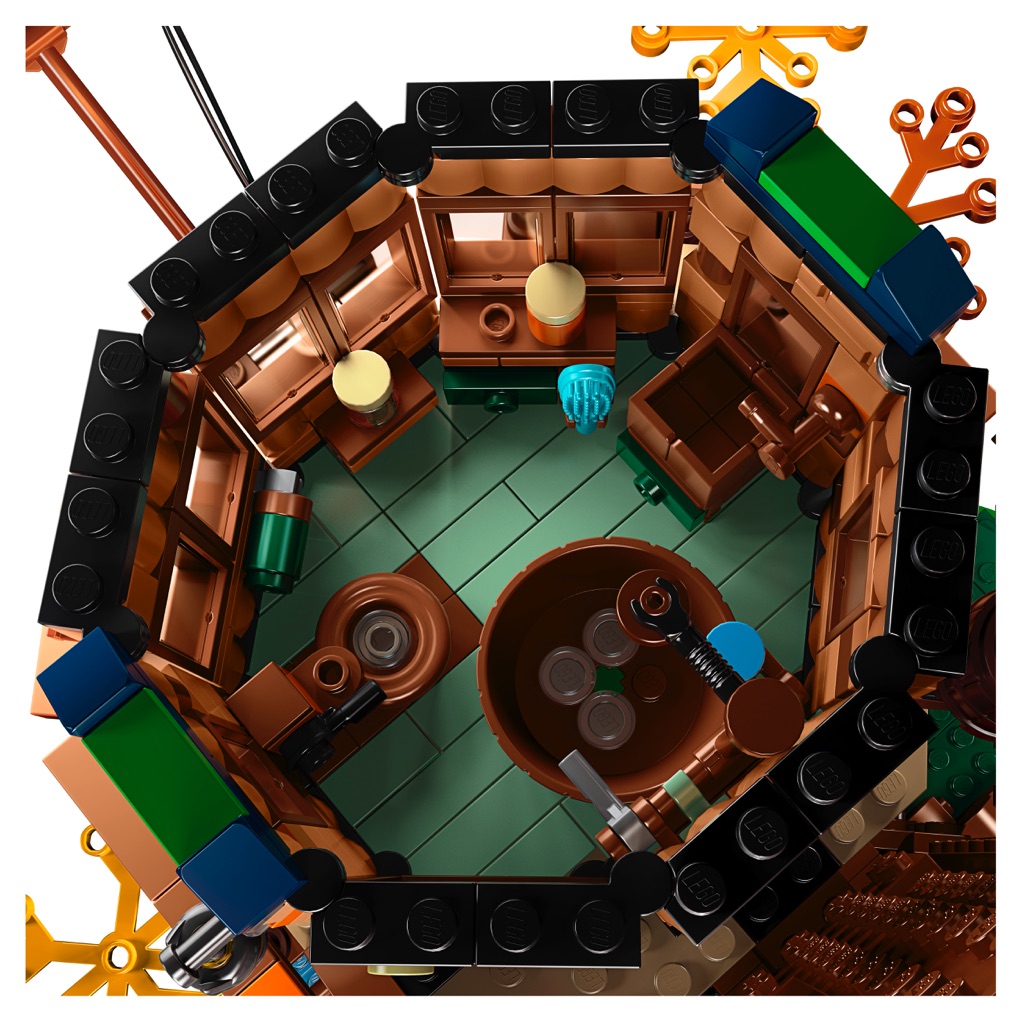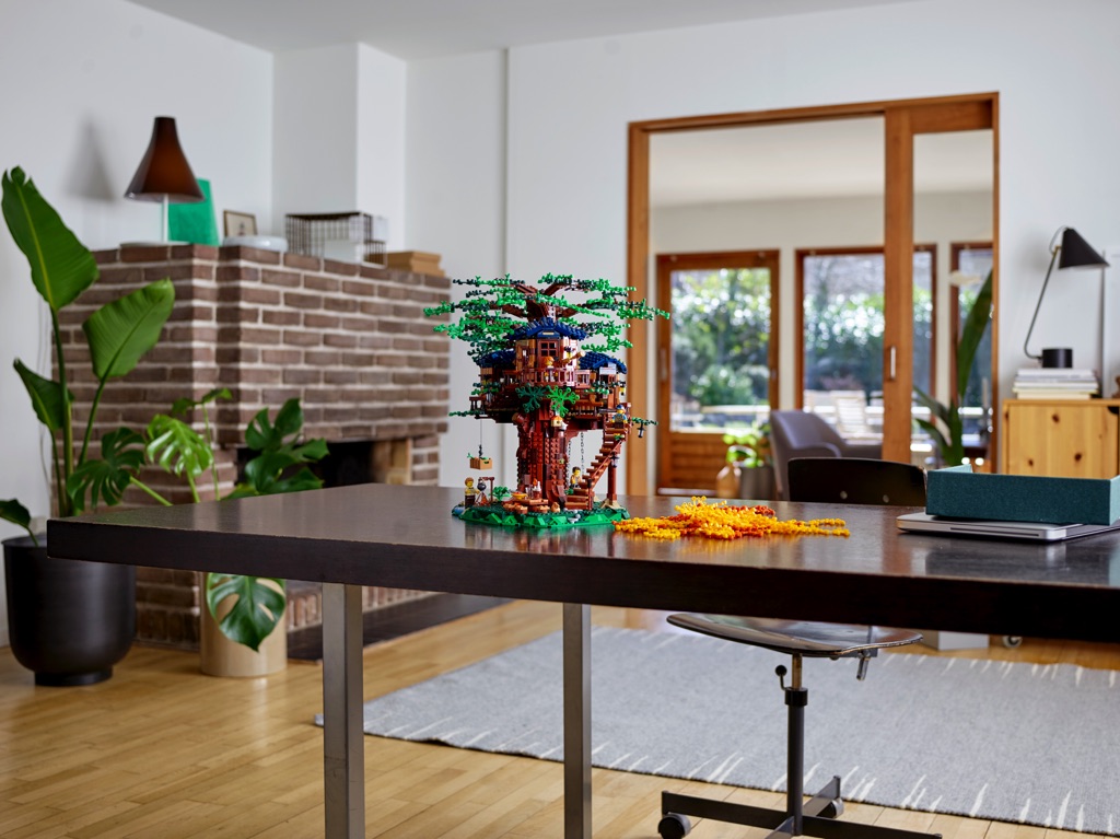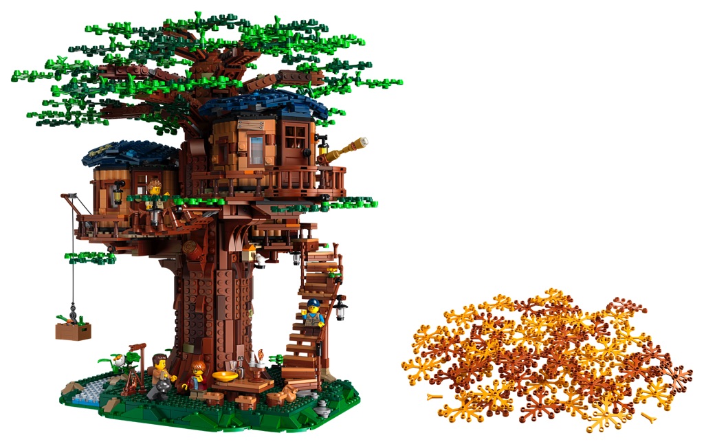 - Véritable défi, ce modèle à construire composé de 3 036 pièces comprend une base de paysage, un arbre avec jeux de feuilles interchangeables vertes (été) et jaunes et marron (automne), ainsi qu’une cabane LEGO® perchée dans un arbre avec 3 pièces : une chambre parentale, une salle de bains et une chambre d’enfants.