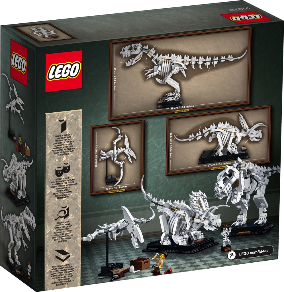 Le projet initial sur la plateforme LEGO Ideas proposait une reproduction des fossiles de 5 dinosaures différents : Stegosaure, Dilophosaure, Brachiosaure, Plesiosaure et Triceratops. Seul le dernier d’entre eux a été retenu par LEGO, et il sera accompagné de deux autres espèces : un Pteranodon, et un Tyrannosaurus Rex. Ce dernier devrait être particulièrement impressionnant : pas moins de 40cm de long pour cette reproduction au 1/32è.