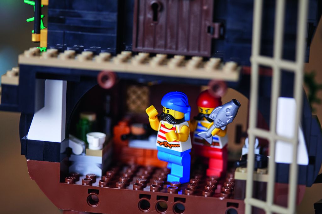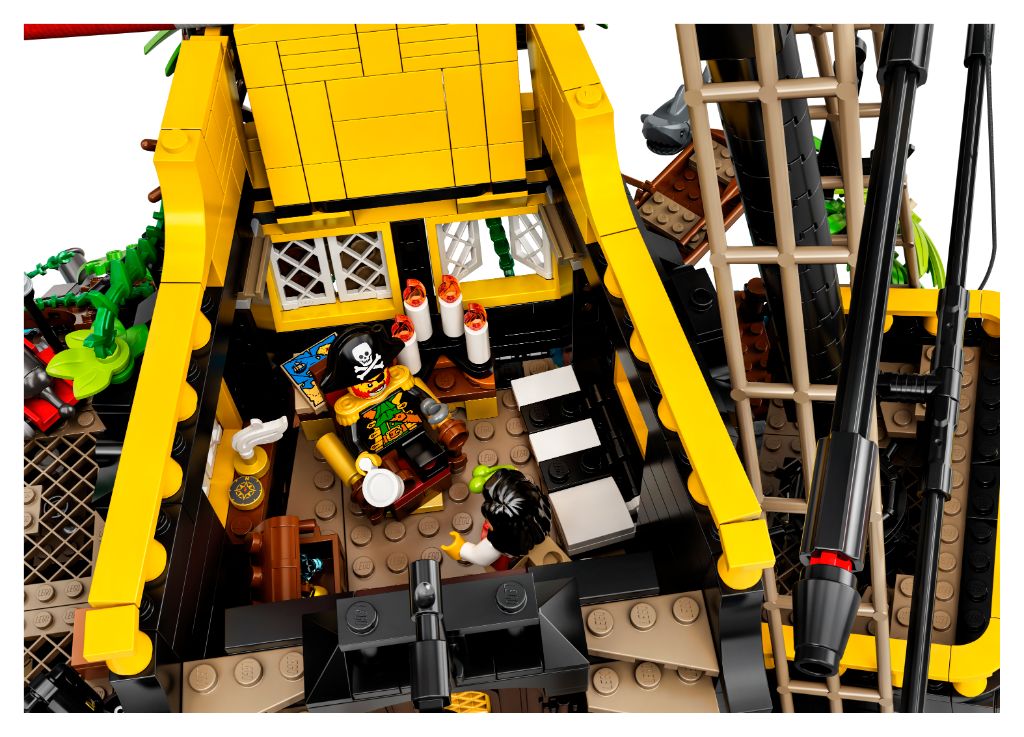 - Rooms including a captain’s cabin, kitchen, tavern, bedroom and jail cell are filled with accessories. The shipwreck also rebuilds into a ship inspired by the 1989 LEGO® model, Captain Redbeard’s Black Seas Barracuda.