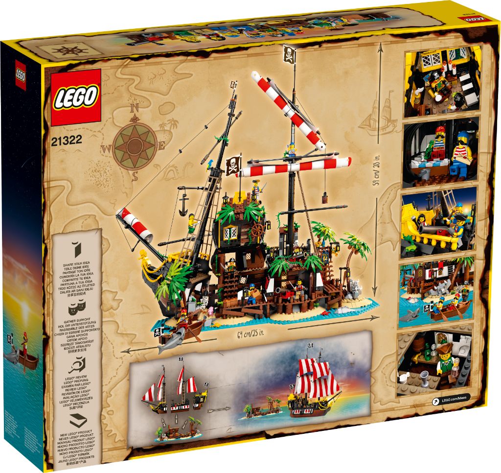 - Build and play with or display this LEGO® Ideas Pirates of Barracuda Bay (21322) shipwreck island model. The island can also be split in half and rearranged, revealing buried pirate treasure.