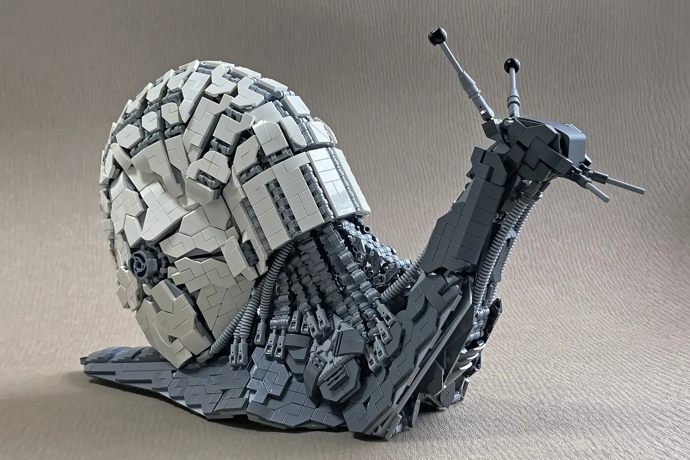 Admirez donc ce Mecha « Snail », un très bel escargot dont les formes organiques sont superbement rendues, à grand renfort de tuyaux, de clips et de wedges de toutes tailles et de toutes formes.