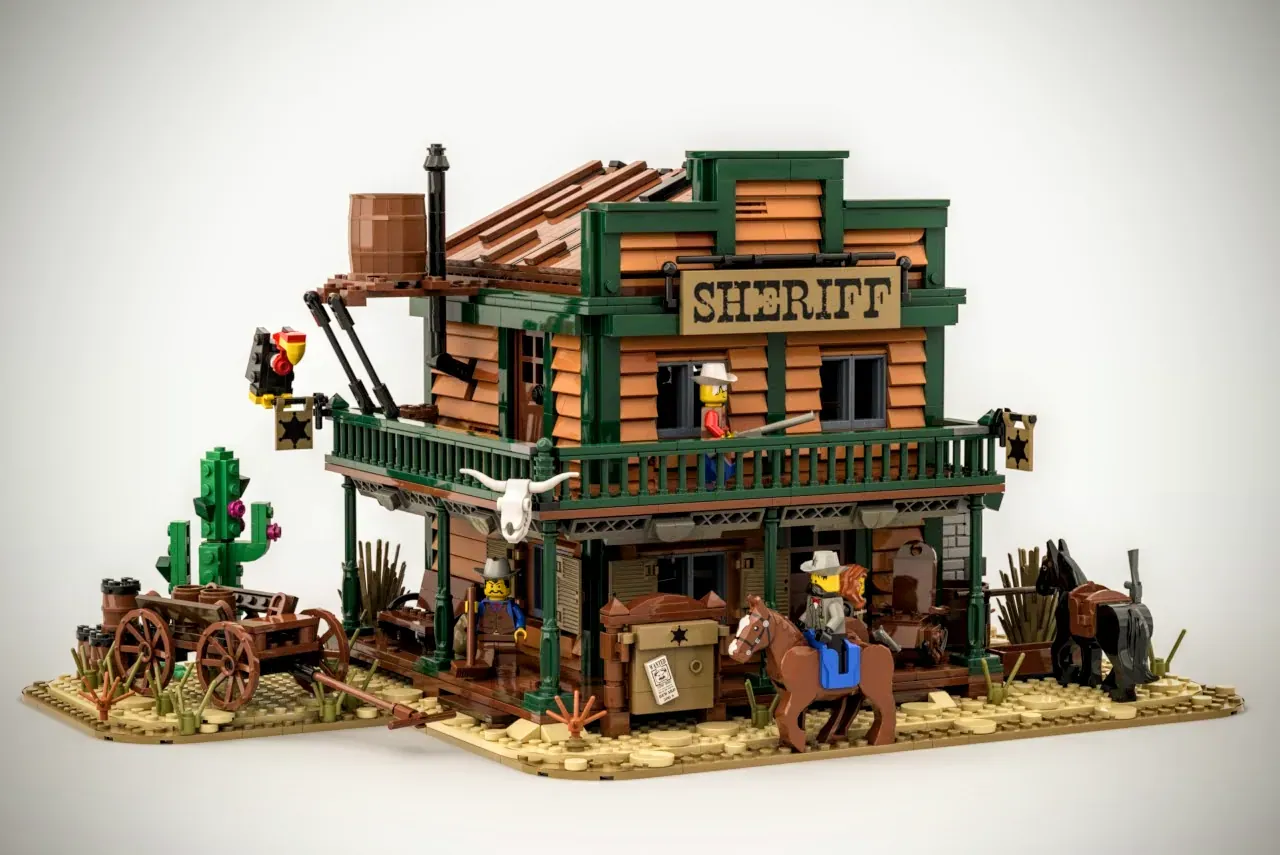 Direction le Far West avec cette création, qui nous propose un bureau de Shériff modulaire avec sa geôle, une chambre ou encore un coffre-fort… et évidemment son lot de minifigs !