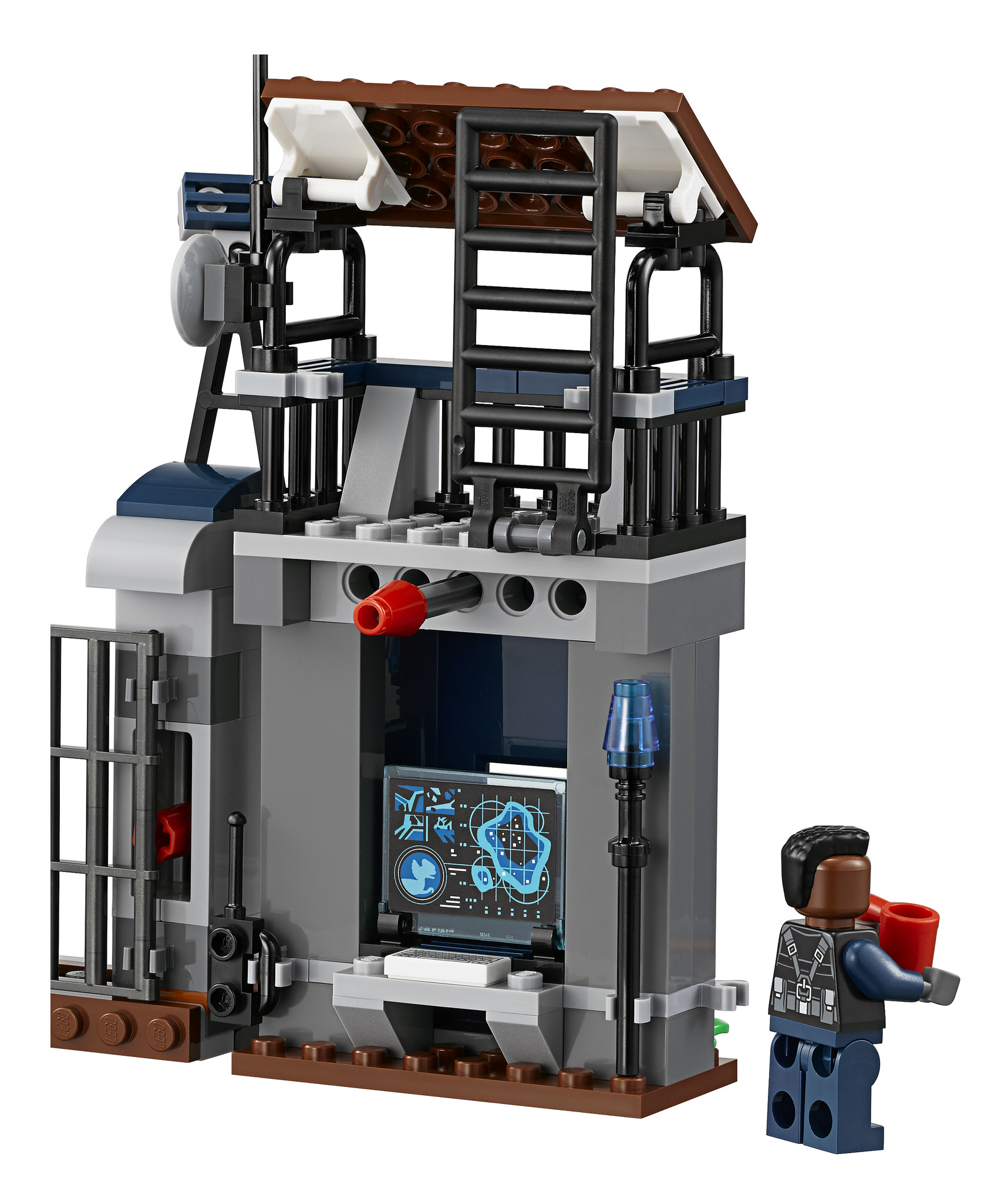 -Features an outpost fence with a watchtower, movable crane and exploding gate and wall functions.
