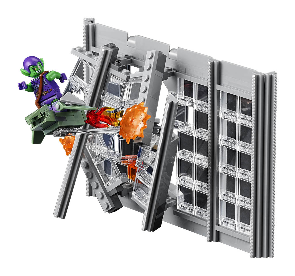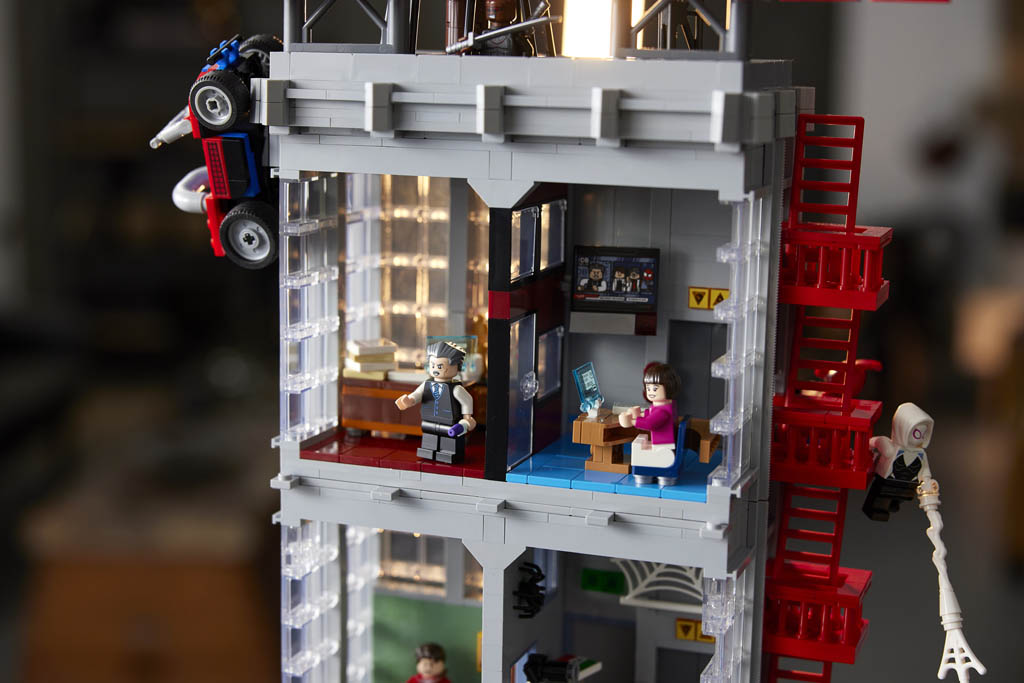 LEGO a choisi ici de représenter le building tel qu’on le voit dans les comics plutôt que dans les derniers films, et tout ceci semble plutôt réussi. Prévoyez tout de même un peu de place (enfin surtout de hauteur !) pour l’exposer : le bâtiment mesure 82cm de haut, pour 35cm de profondeur et 27cm de large.