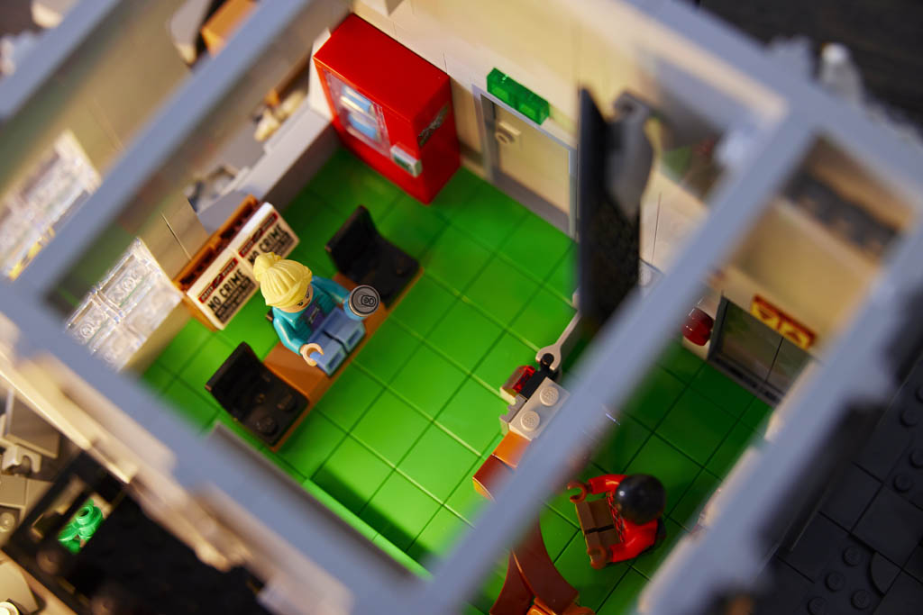 Comme on s’y attend avec ce type de sets, c’est extrêmement détaillé, qu’il s’agisse de l’extérieur du bâtiment mais également de son intérieur. Intérieur accessible soit en séparant les niveaux comme un bâtiment modulaire, soit en détachant une partie de façade. Car à la différence de nombreux bâtiments de ce style, celui-ci est totalement fermé et est donc parfaitement « exposable » sous tous les angles – et c’est à mon avis une très bonne chose.