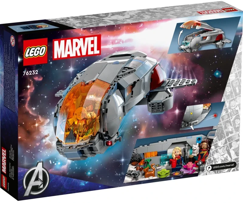 Ce vaisseau, basé sur le film The Marvels attendu pour le 8 novembre 2023 en salles, est accompagné de 3 minifigs : Captain Marvel, Ms. Marvel et Photon, ainsi que du chat Goose et ses chatons.