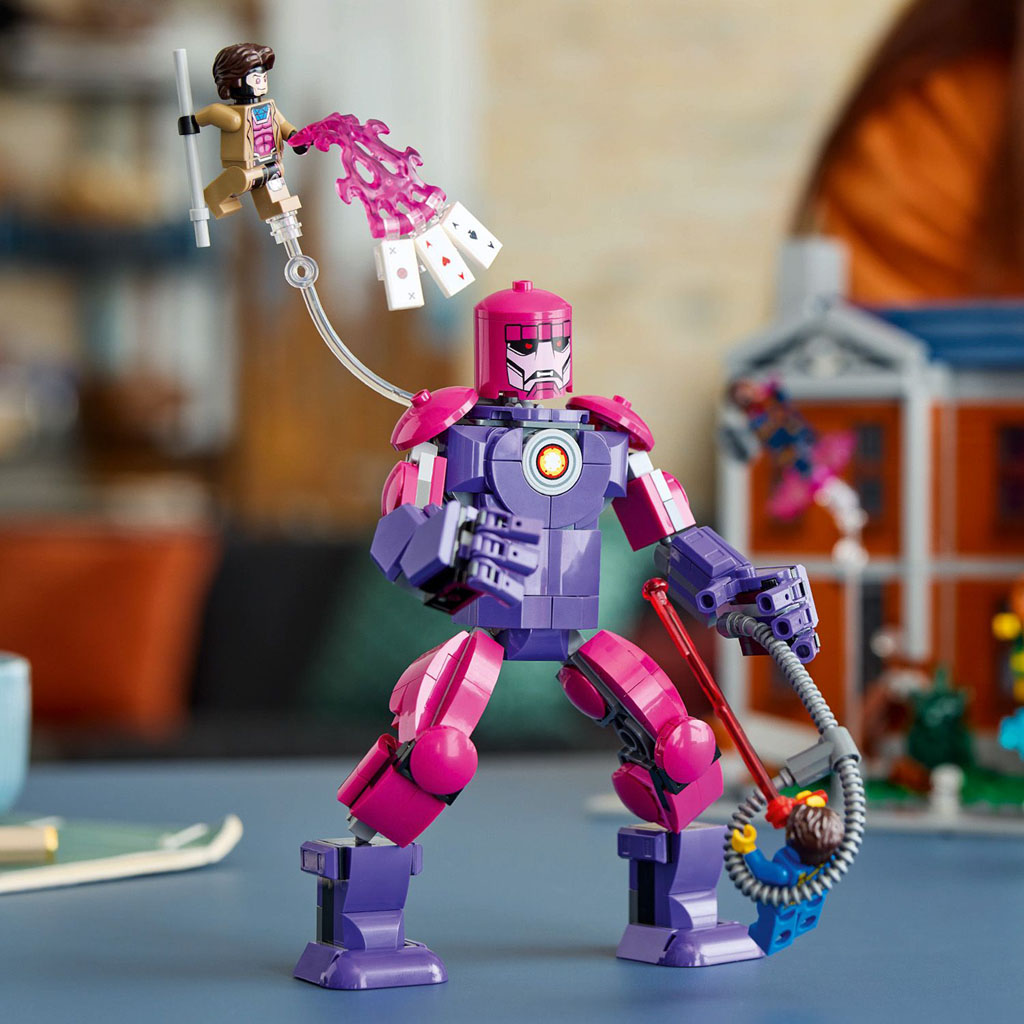 En plus du manoir, le set LEGO inclut un Sentinel à construire et 10 minifigurines : Professor X, Wolverine, Jean Grey, Cyclope, Tornade (Storm), Gambit, Malicia (Gambit), Iceberg (Iceman), Bishop et Magnéto. Cinq de ces minifigurines sont inédites dans l’univers LEGO.
