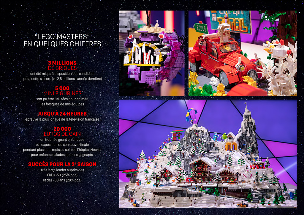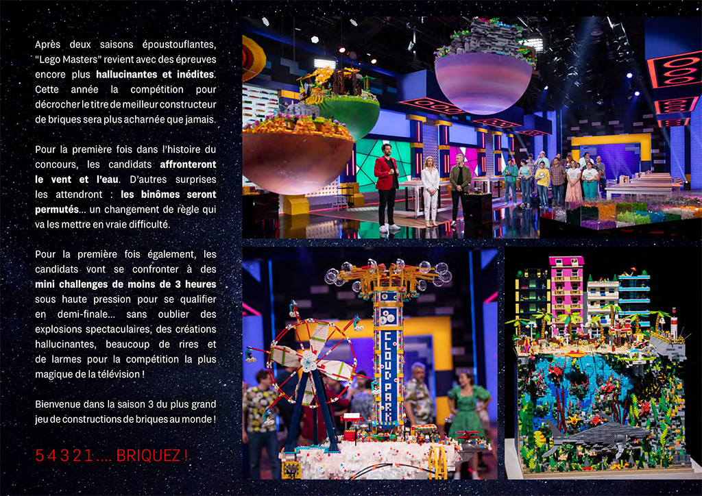 Enfin, comme pour les saisons précédentes, LEGO Masters sera suivie d’Extra Brique en 2ème partie de soirée. Cette émission proposera quelques bonus comme les coulisses, quelques images des autres variantes internationales de l’émission, des découvertes de créations ou encore des petits challenges proposés aux anciens candidats.