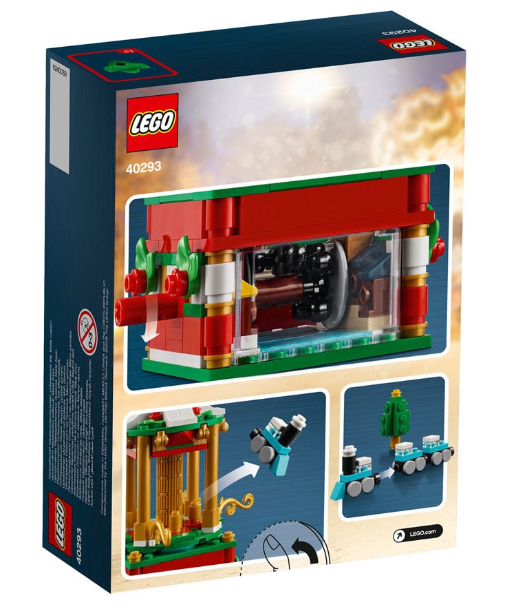 Cette année, il semblerait donc que LEGO s’apprête à nous proposer ce set 40293 – Christmas Roundabout. Il s’agit d’un manège, mis en mouvement grâce à un système d’engrenages situé dans le socle. Il est également possible de sortir le petit train et le sapin du manège pour les reconstituer à côté de ce dernier. Encore une bien jolie création.