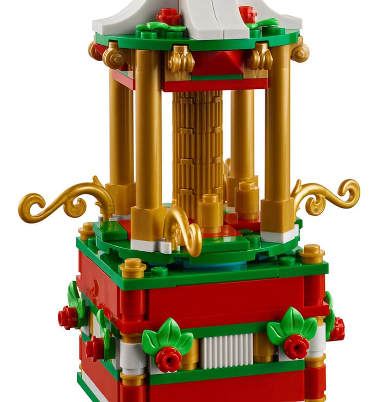 Cette année, il semblerait donc que LEGO s’apprête à nous proposer ce set 40293 – Christmas Roundabout. Il s’agit d’un manège, mis en mouvement grâce à un système d’engrenages situé dans le socle. Il est également possible de sortir le petit train et le sapin du manège pour les reconstituer à côté de ce dernier. Encore une bien jolie création.