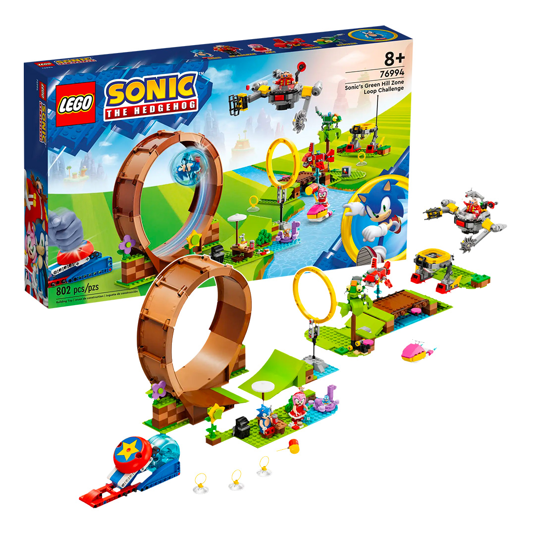 - LEGO 76994 Sonic’s Green Hill Zone Loop Challenge (802 pièces – 104.99 €)