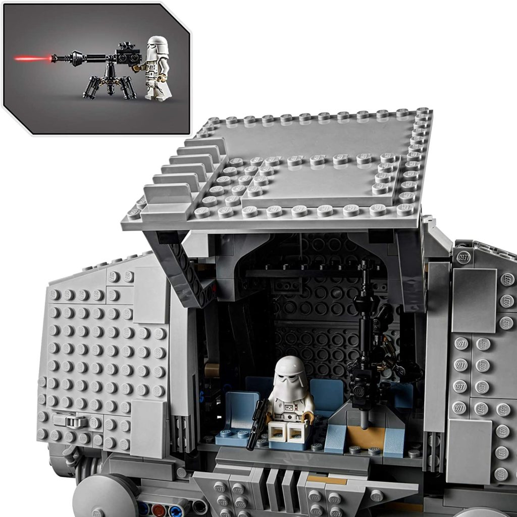 On trouve 6 minifigs dans ce set : Luke Skywalker, le Général Veers, deux pilotes d’AT-AT et deux Snowtroopers. Et la jouabilité semble au rendez-vous avec un petit paquet de fonctionnalités que je vous laisse observer sur les différents visuels.