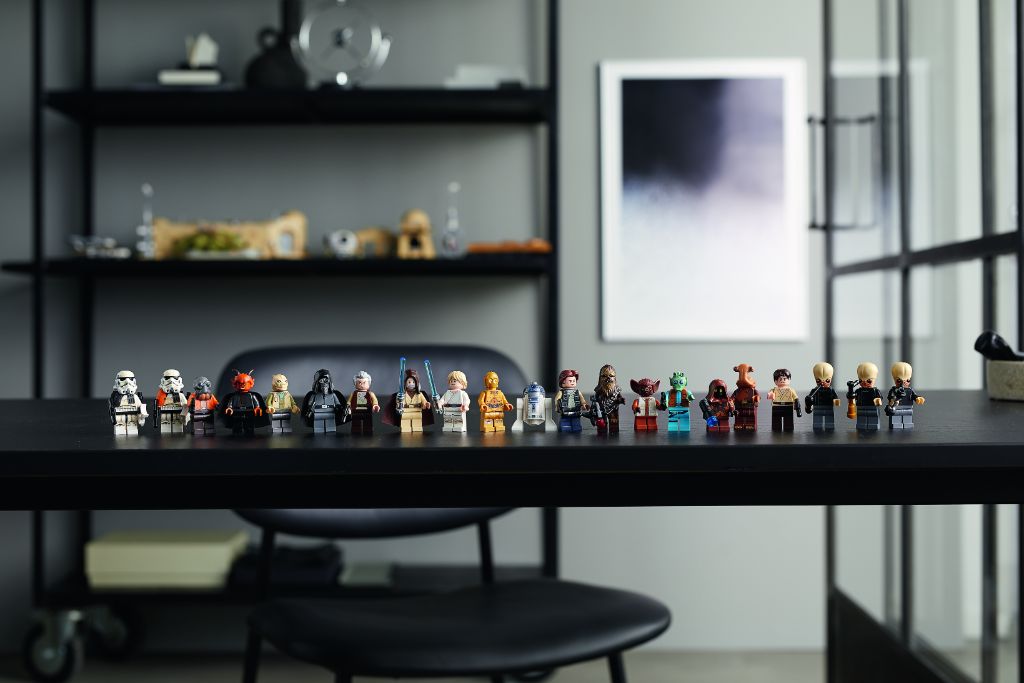 Parmi les minifigs on notera évidemment les « stars » de la saga Star Wars comme Luke Skywalker, Obi-Wan Kenobi, Han Solo, Chewbacca et les droïdes C-3PO et R2D2 ; mais également des personnages jusqu’ici inédits comme Ponda Baba, Dr. Evazan et Garindan. Le set contient pas moins de 21 personnages !