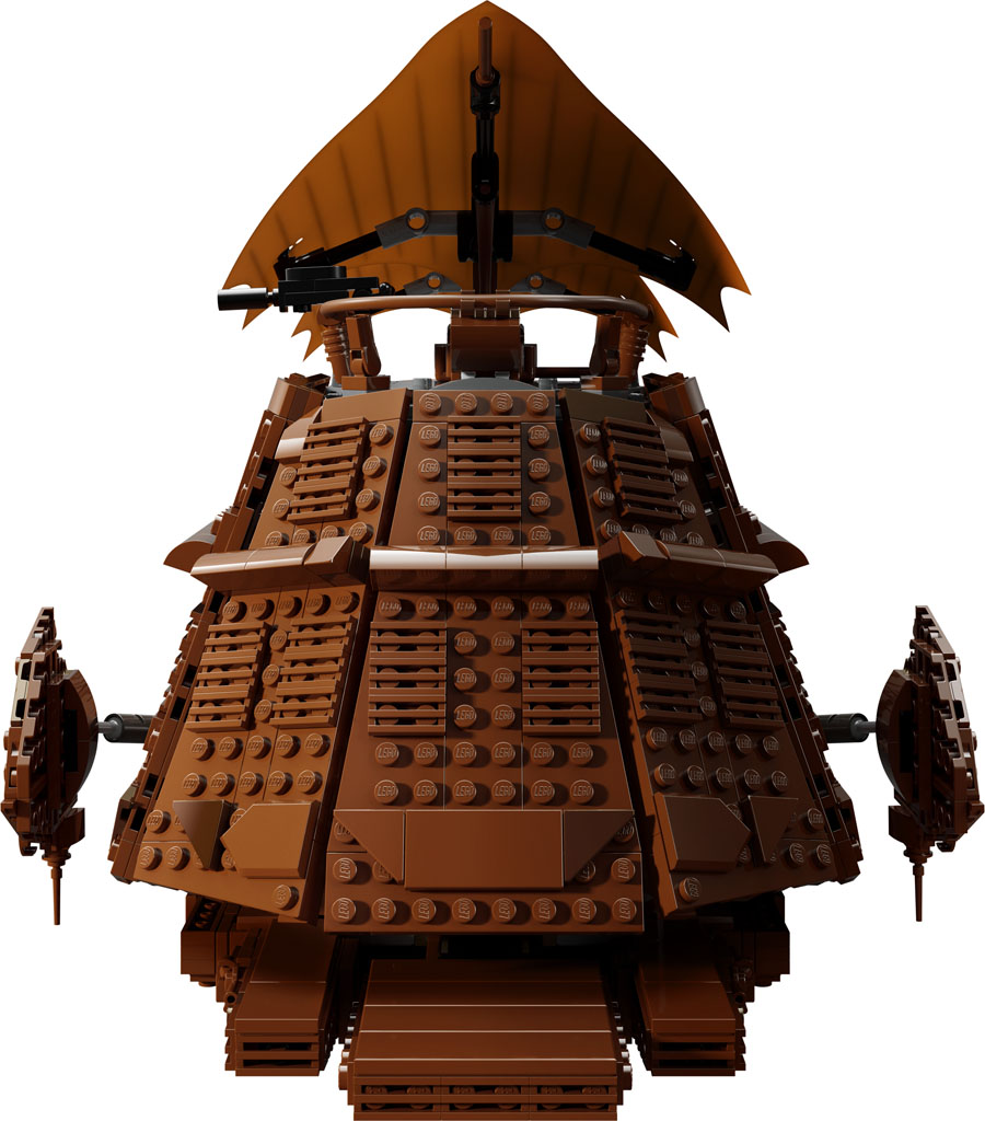 Il s’agira ici de reproduire la Khetanna, barge à voile de Jabba le Hutt vue dans Le Retour du Jedi dans le désert de Tatooine, pour le casse-croûte du Sarlacc. 11 ans après la dernière version de l’engin dans le set 75020 Jabba’s Sail Barge, il s’agira ici d’en construire une version XXL : 77 cm de long pour 25 cm de large et 25 cm de haut.