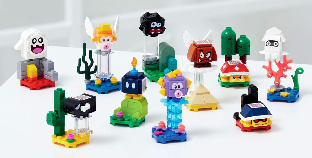 Hormis le pack de démarrage et sa figurine de Mario interactive, et les 4 costumes dont nous avons déjà parlé, la gamme LEGO Super Mario proposera également une grosse collection d’extensions qui permettront d’étoffer les « niveaux » qu’il sera possible de créer en y apportant divers bonus et fonctionnalités. LEGO proposera également 10 sachets « surprises » pour ajouter différents personnages / ennemis aux niveaux.