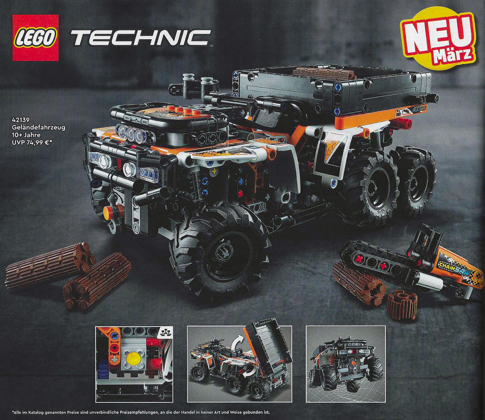 Du côté de la gamme LEGO Technic, on retrouve un engin de chantier avec la référence 42133 Telescopic Loader (143 pièces – 9,99 €), et deux véhicules dont un, particulièrement original, est capable de rouler sur ses deux « faces » grâce à de grandes chenilles : les références 42139 Off-Road Vehicle (764 pièces – 74,99 €) et 42140 App-Controlled Vehicle (772 pièces – 129,99 €).