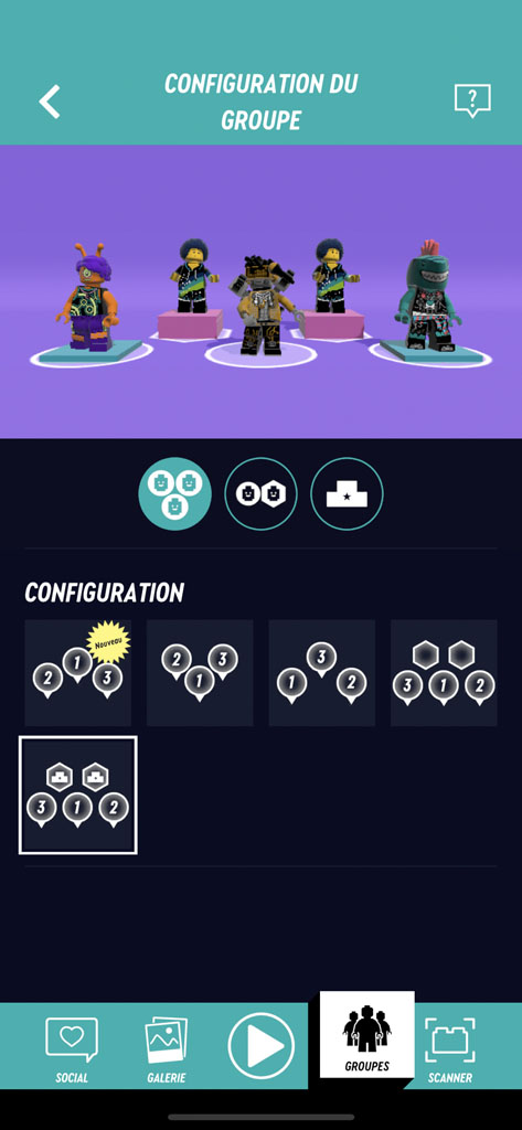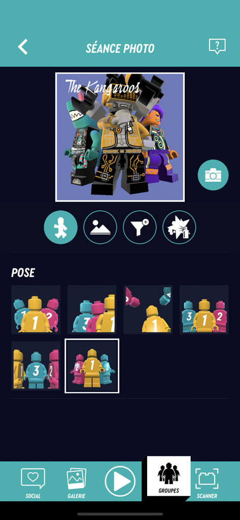 - la constitution éventuelle d’un groupe, avec plusieurs minifigs. Le nom du groupe n’est pas libre mais aléatoire (permettant d’éviter des choses inappropriées). Vous pouvez cependant « tourner » de nouveau pour trouver un nom qui vous plait mieux.
