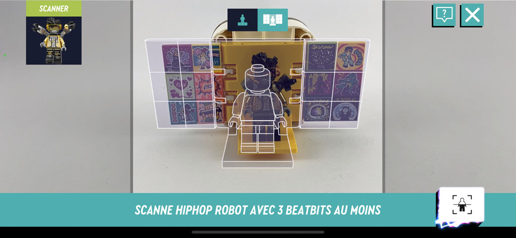 L’assemblage ne prend guère plus de 5 minutes, l’expérience de construction n’étant ici clairement pas le sujet principal. La boîte contient également 16 beatbits. 2 sont exclusifs à la beatbox en question, et les 14 autres sont aléatoires. Dans la « base » de la boîte, 16 emplacements permettent de ranger les 16 beatbits fournis.