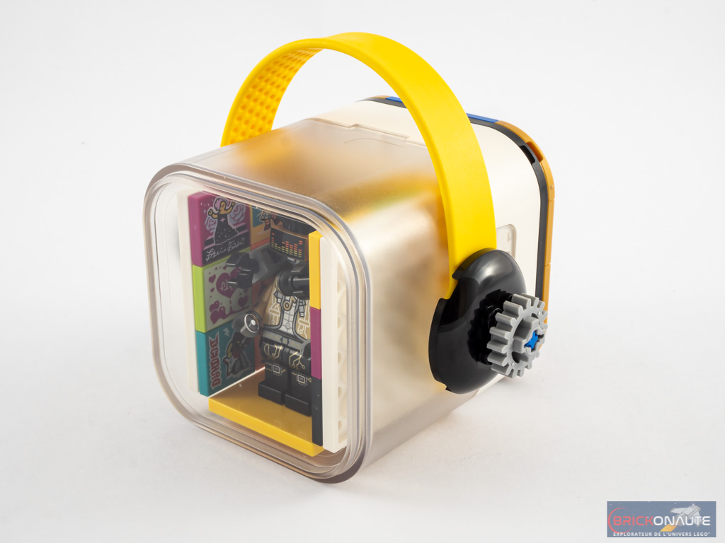 L’assemblage ne prend guère plus de 5 minutes, l’expérience de construction n’étant ici clairement pas le sujet principal. La boîte contient également 16 beatbits. 2 sont exclusifs à la beatbox en question, et les 14 autres sont aléatoires. Dans la « base » de la boîte, 16 emplacements permettent de ranger les 16 beatbits fournis.