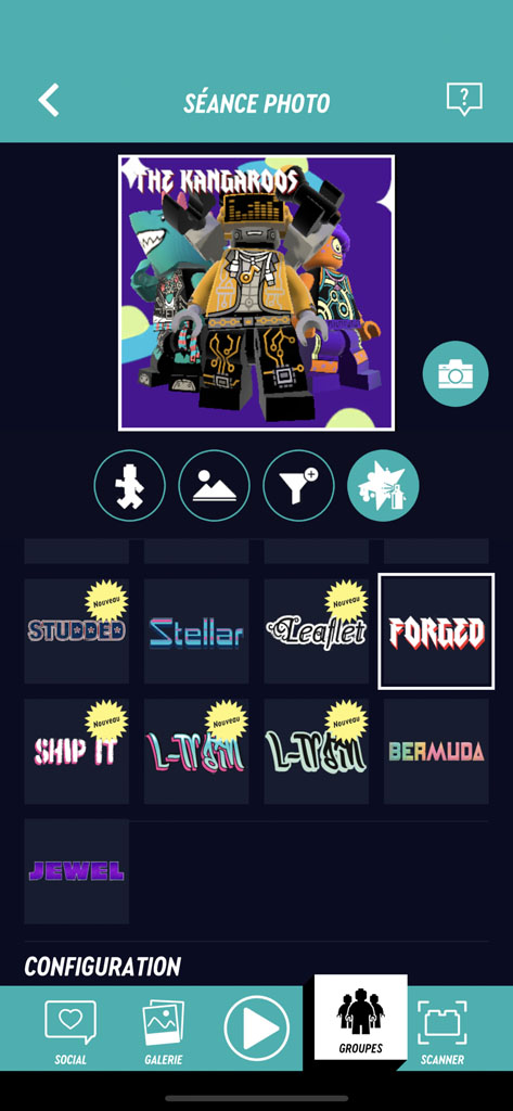 - la constitution éventuelle d’un groupe, avec plusieurs minifigs. Le nom du groupe n’est pas libre mais aléatoire (permettant d’éviter des choses inappropriées). Vous pouvez cependant « tourner » de nouveau pour trouver un nom qui vous plait mieux.