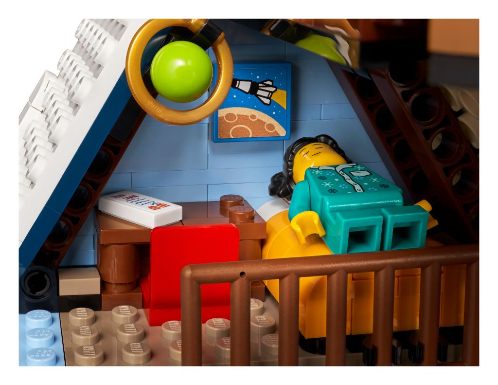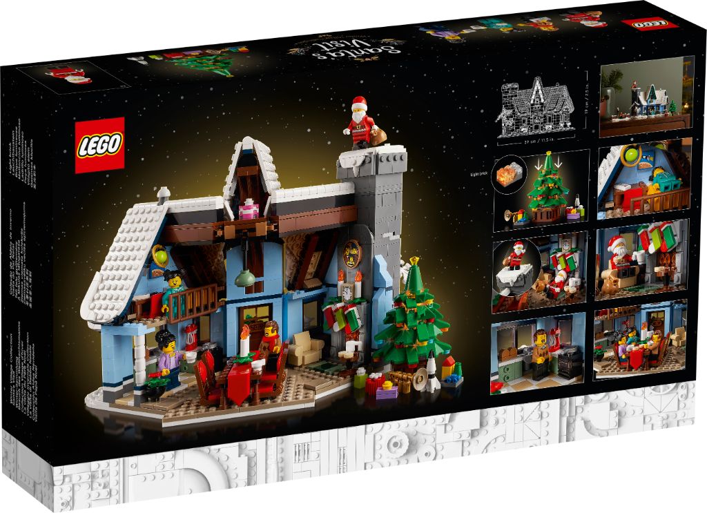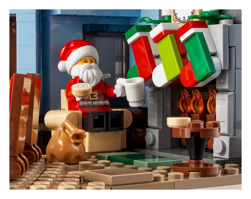 Tous les petits détails sont là, comme souvent dans cette collection. Côté extérieur, on remarquera l’arbre enneigé, la boîte aux lettres avec une lettre au Père Noël ou encore le bonhomme de neige. Et l’intérieur est richement aménagé avec une jolie table, un fauteuil, une cuisine ou une chambre. LEGO proposera 4 minifigs avec le Père Noël, les deux parents et leur fille.
