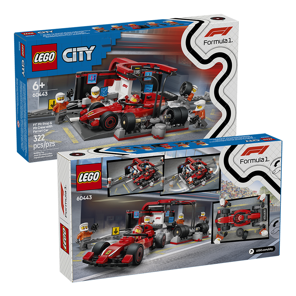 LEGO City 60443 F1 Pit Stop & Pit Crew with Ferrari Car (322 pièces – 29,99 €)
