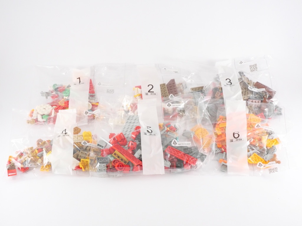 A l’intérieur, nous trouvons 6 sachets de pièces numérotés et une notice d’instructions de 124 pages. Tout comme pour le set 80105, pas l’ombre d’un sticker. Et toute une collection de pièces rares ou tampographiées, certaines étant communes aux deux sets.