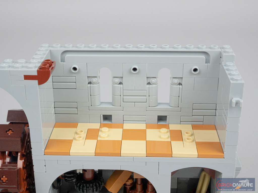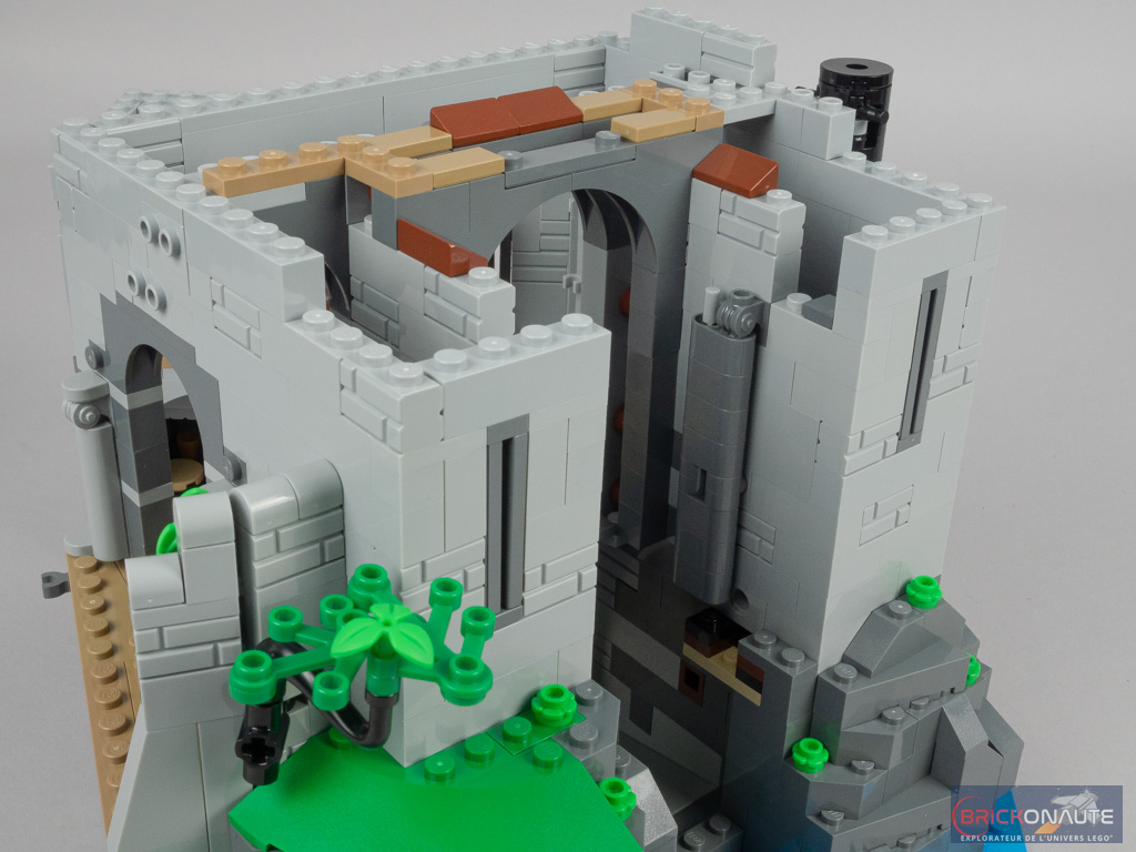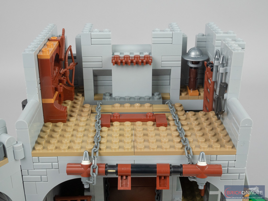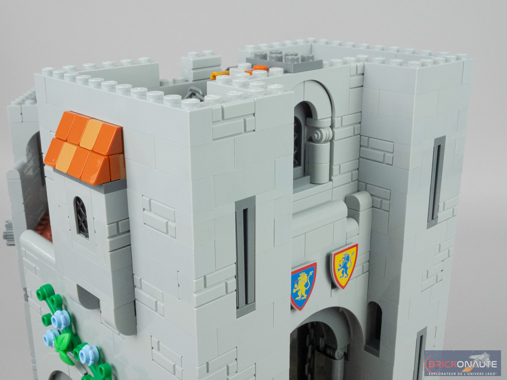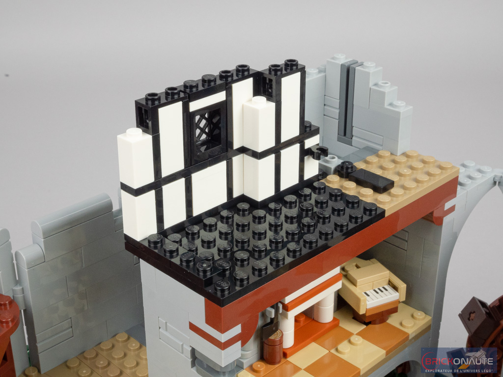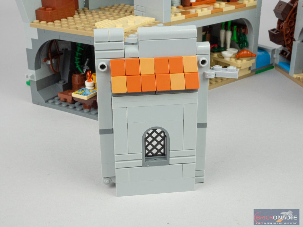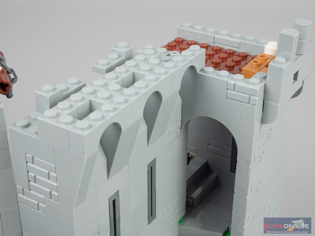 Si vous recherchiez une expérience de construction fidèle aux sets de l’époque, passez votre chemin. Si par contre vous aimez les techniques inventives, vous serez très certainement ravis. Du SNOT, des angles improbables, des joints divers et variés, des mécanismes… difficile de s’ennuyer au fil de la douzaine d’heures nécessaire à l’assemblage. On alterne entre les phases de construction des murs, des créneaux ou des intérieurs : la monotonie n’a pas le temps de s’installer. Petit bémol néanmoins pour l’une des toutes dernières étapes, avec l’assemblage des créneaux des deux plus grandes tours : une étape ultra répétitive et plutôt casse-pieds (pour rester poli !).