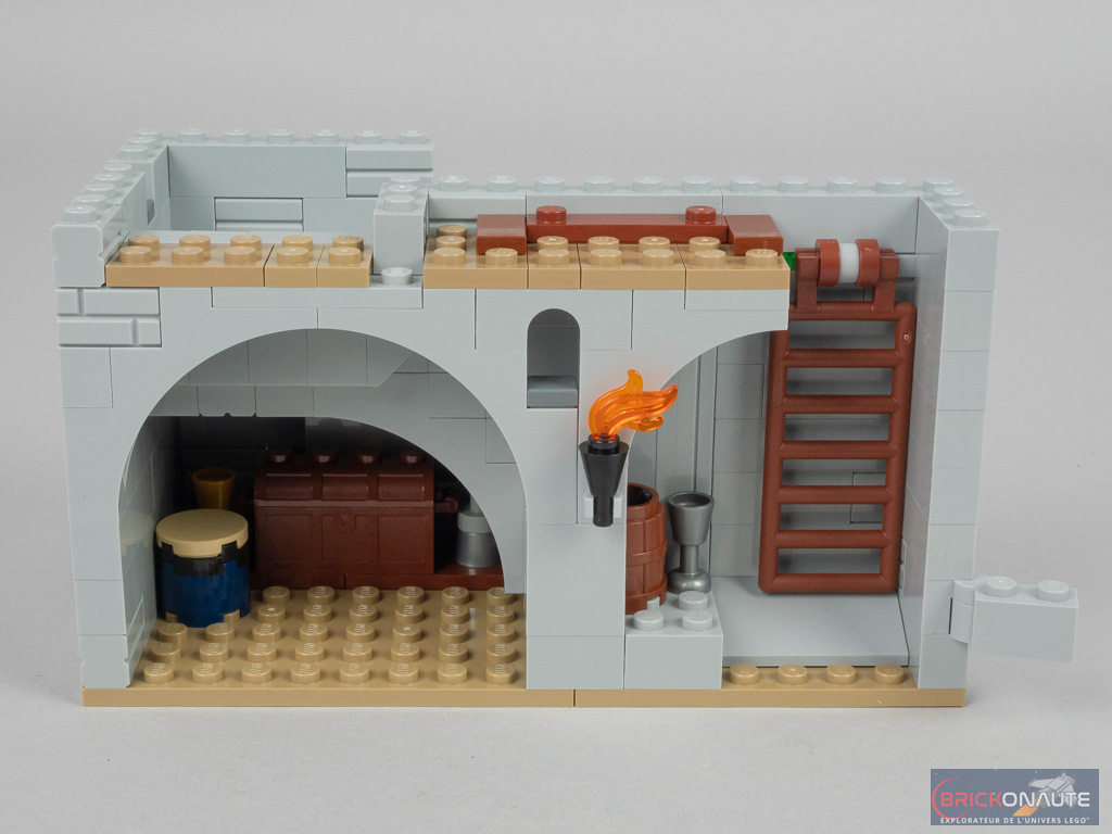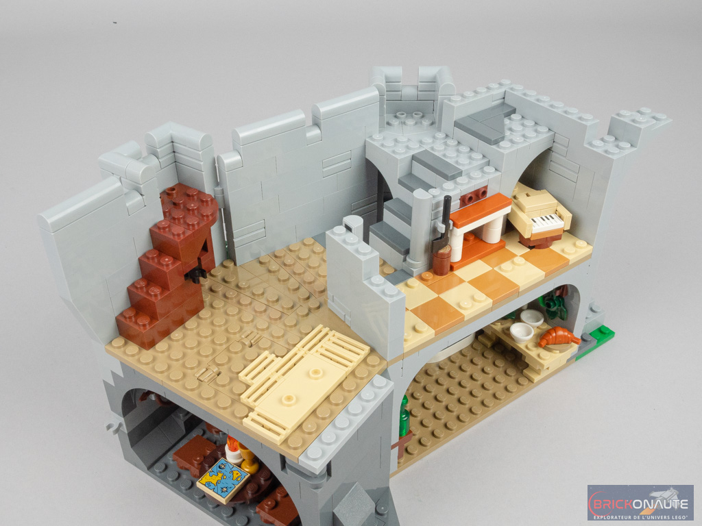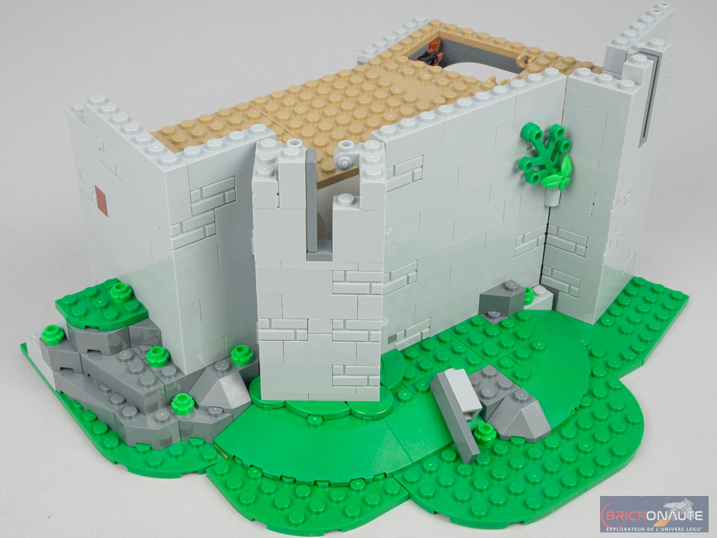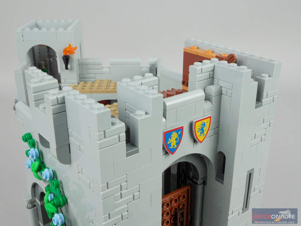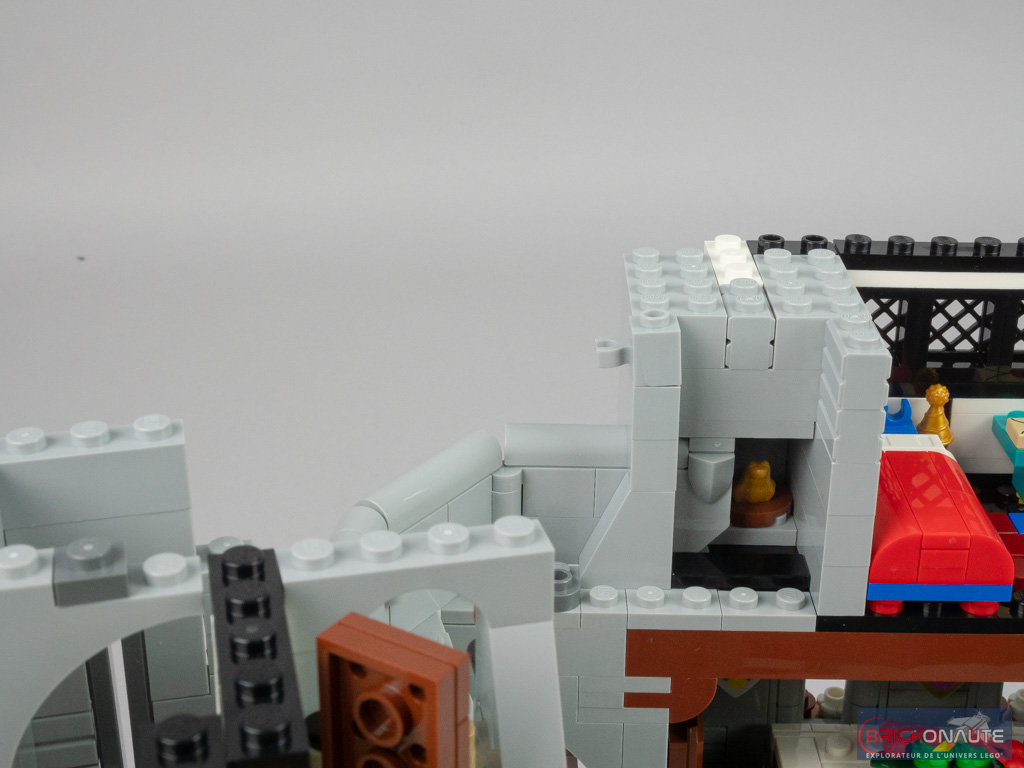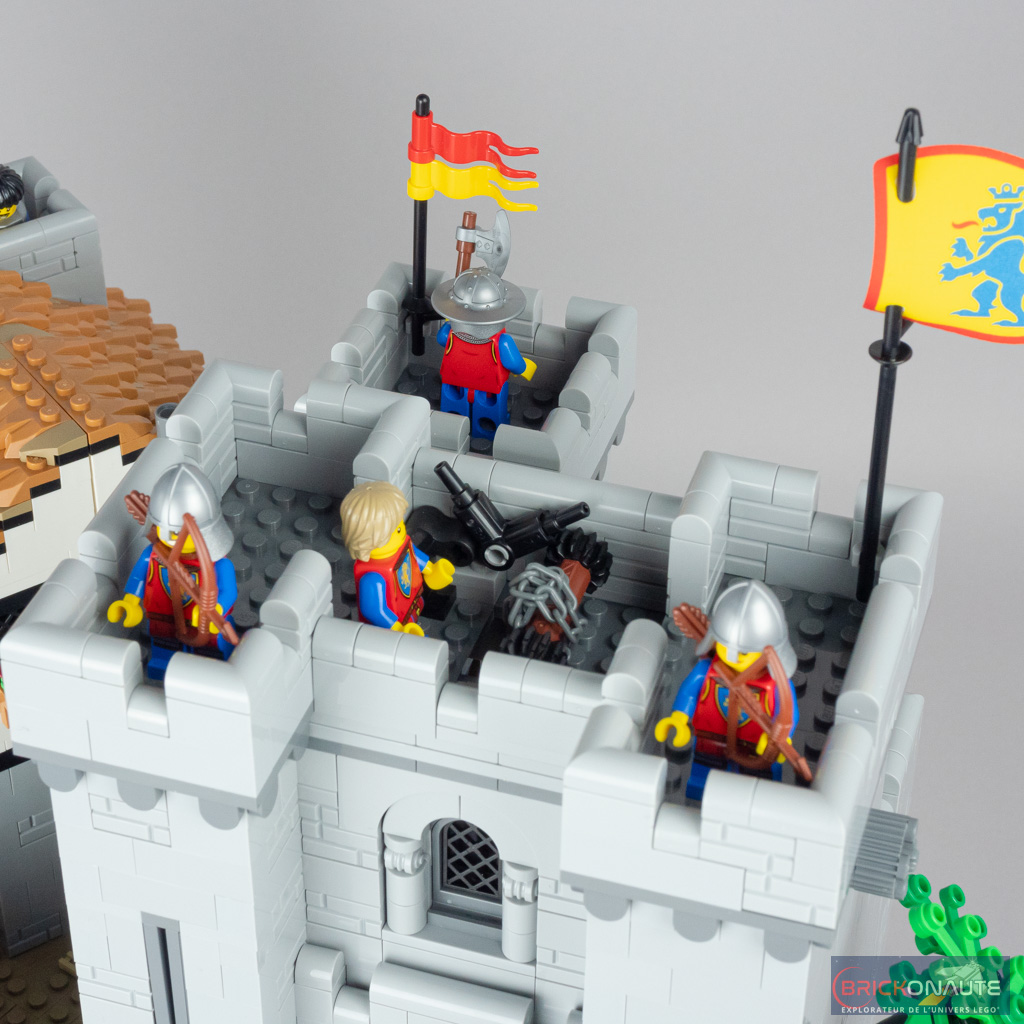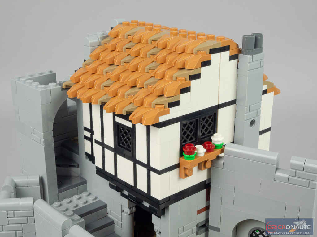 Si vous recherchiez une expérience de construction fidèle aux sets de l’époque, passez votre chemin. Si par contre vous aimez les techniques inventives, vous serez très certainement ravis. Du SNOT, des angles improbables, des joints divers et variés, des mécanismes… difficile de s’ennuyer au fil de la douzaine d’heures nécessaire à l’assemblage. On alterne entre les phases de construction des murs, des créneaux ou des intérieurs : la monotonie n’a pas le temps de s’installer. Petit bémol néanmoins pour l’une des toutes dernières étapes, avec l’assemblage des créneaux des deux plus grandes tours : une étape ultra répétitive et plutôt casse-pieds (pour rester poli !).